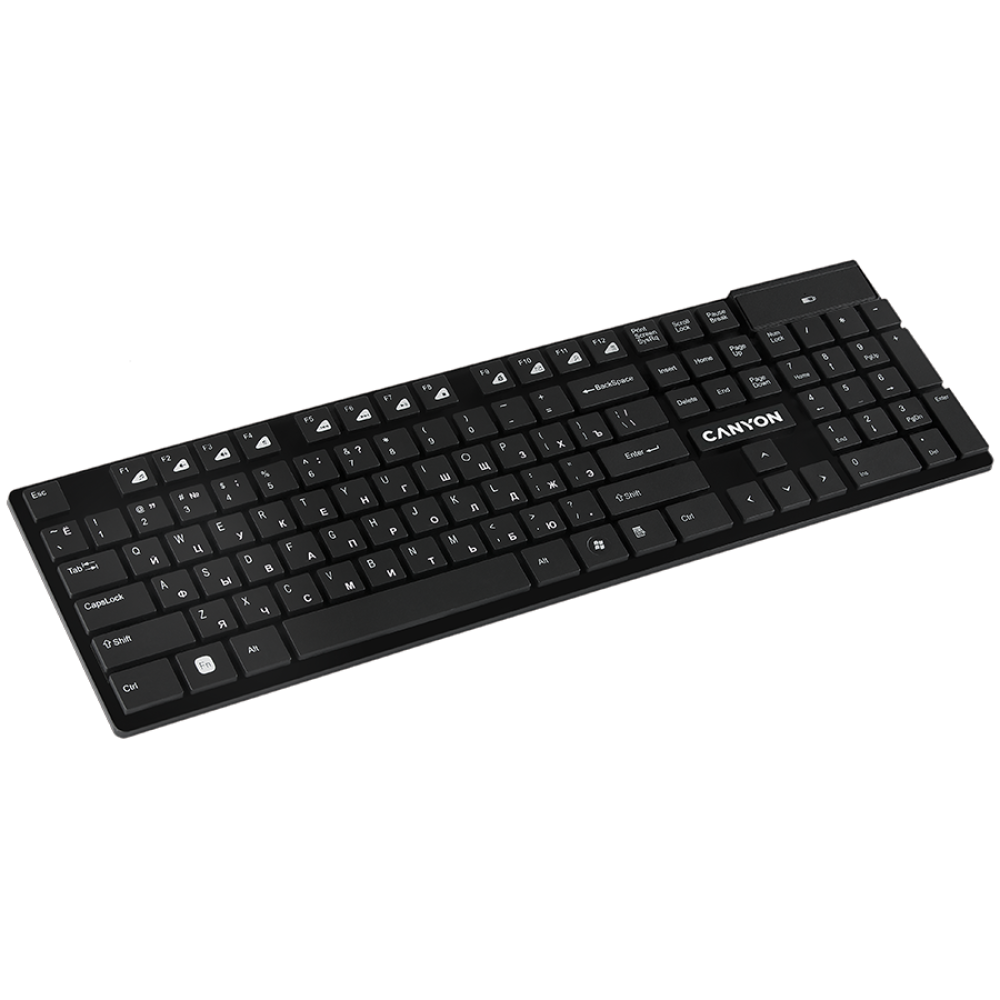CANYON 2.4GHZ wireless keyboard, 104 keys, slim design, chocolate key caps, RU layout (black), 425*130*235mm, 0.398kg