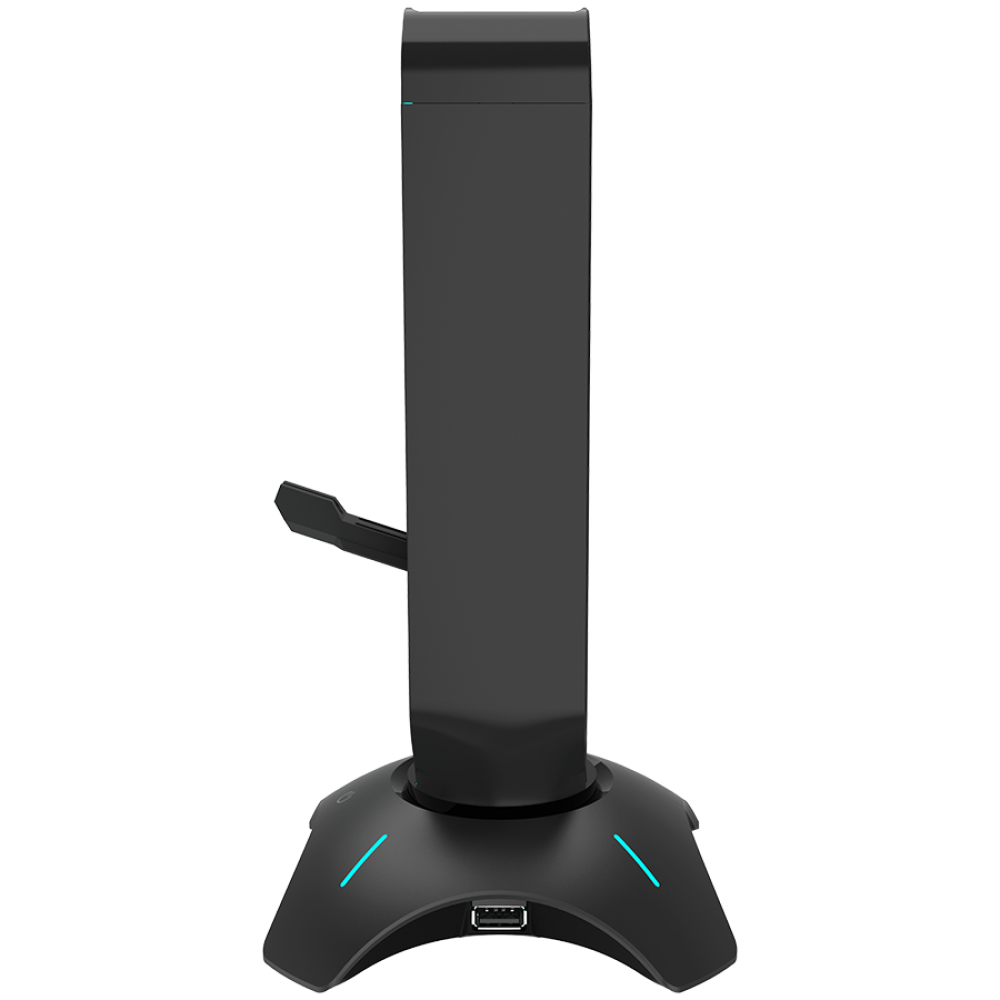 Gaming 3 in 1 Headset stand, Bungee and USB 2.0 hub, 2 USB hub, 1.5m standard USB to USB 5mm PVC cable, Weighted design with non-slip grip, Touch switch to control LED light