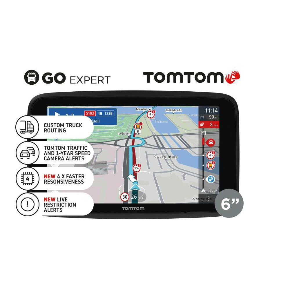 - TomTom GO ExpertDrive confidently with TomTom GO Expert. Real-time alerts, smart ways around traffic and routes tailored to your large vehicle make sure you always know what’s ahead.Navigate with ease from a 7” touchscreenEnjoy up to 4x faster responsivenessExpert navigation for your large vehicleNever find yourself approaching a road, tunnel or bridge not fit for your vehicle with custom routing - based on vehicle size, weight, cargo type and maximum speed. Now updated with City Ban routing, and ADR Tunnel Code and UN Class restrictions.