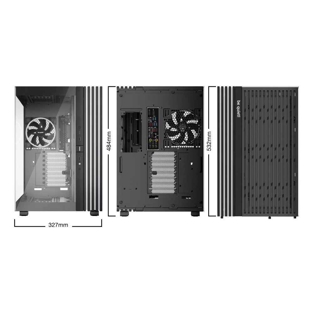 be quiet! LIGHT BASE 900 FX Black. Form factor: Full Tower, Type: PC, Product colour: Black. Supported power supply form factors: ATX, PS2. Side fans installed: 3x 140 mm, Side fans diameters supported: 120,140 mm, Rear fans installed: 1x 140 mm. Supported HDD sizes: 2.5,3.5. Width: 327 mm, Depth: 532 mm, Height: 484 mm