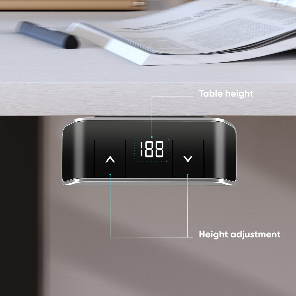 Summary ONKRON WDF221E-B. Maximum weight capacity: 70 kg, Height adjustment type: Electric, Maximum speed: 25 mm/sec. Minimum height: 71 cm, Maximum height: 118 cm. Package width: 1044 mm, Package depth: 375 mm, Package height: 105 mm. AC adapter input voltage: 100-240 V