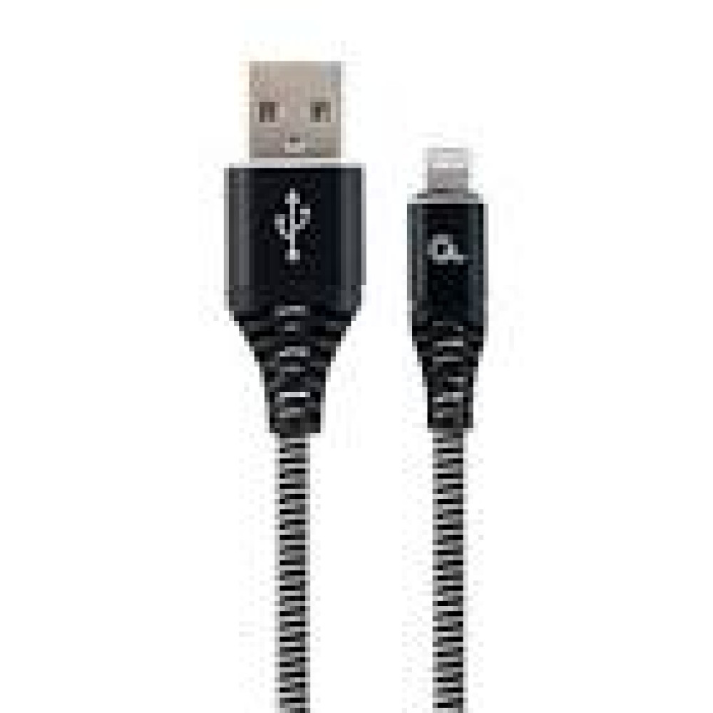 GEMBIRD CC-USB2B-AMLM-1M-BW Premium cotton braided 8-pin cable charging and data cable 1m black/white