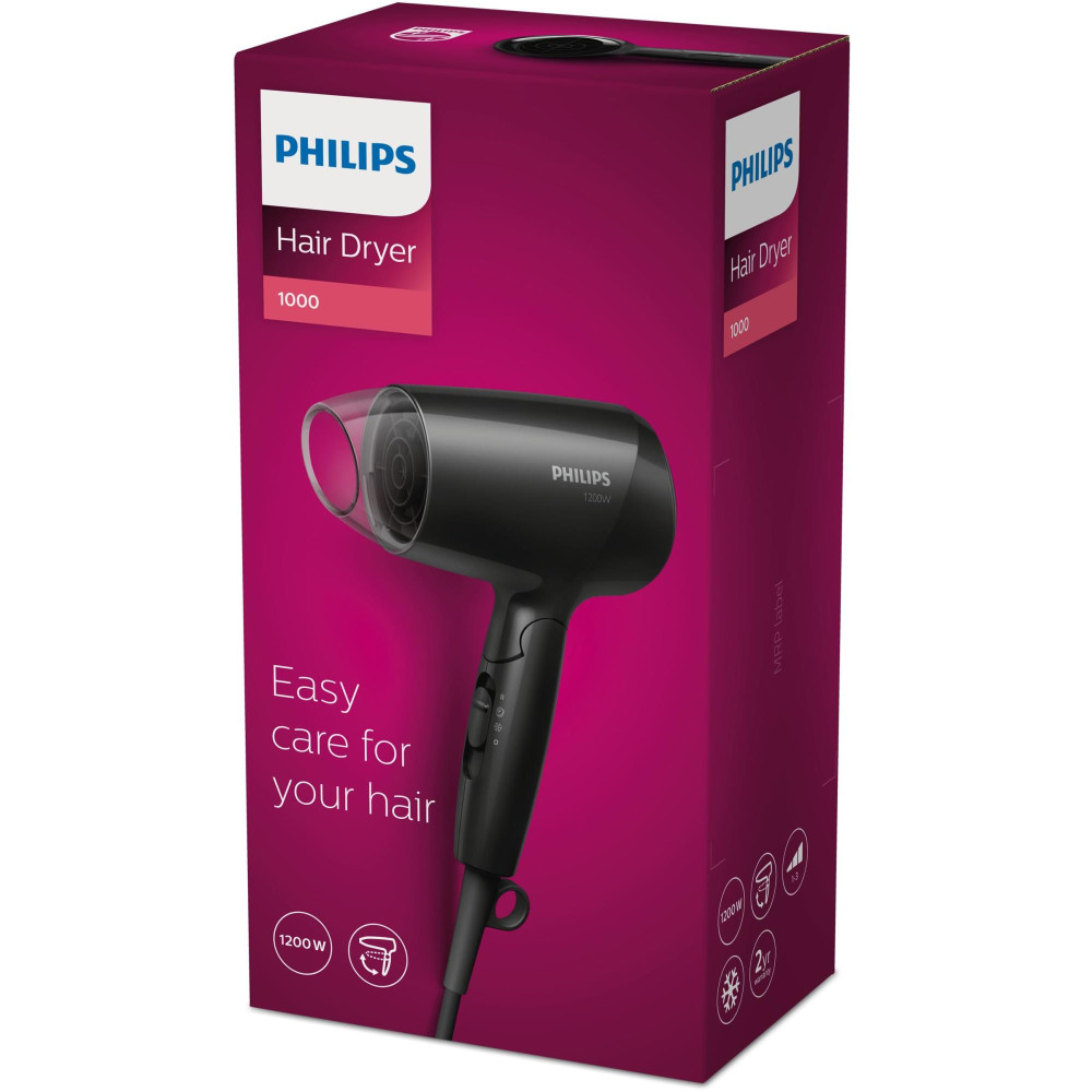 Philips Essential Care EssentialCare BHC010/10 Dryer. Product colour: Black, Hanging type: Hanging loop, Cord length: 1.5 m. Power: 1200 W, AC input voltage: 220 V