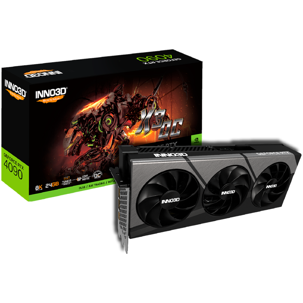 INNO3D NVIDIA Video Card RTX 4090 X3 OC 24GB GDDR6X 384bit, 2520MHz / 21Gbps, 3x DP, 1x HDMI, 3 fan, 3 slot