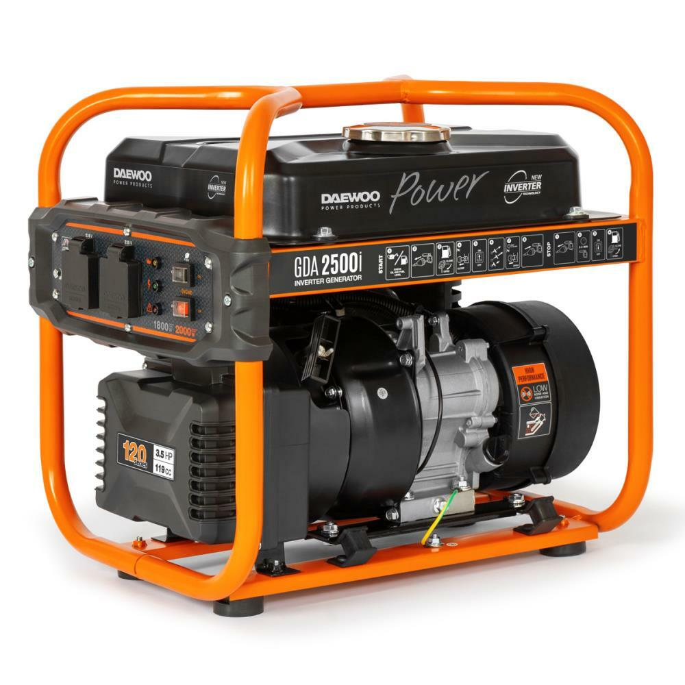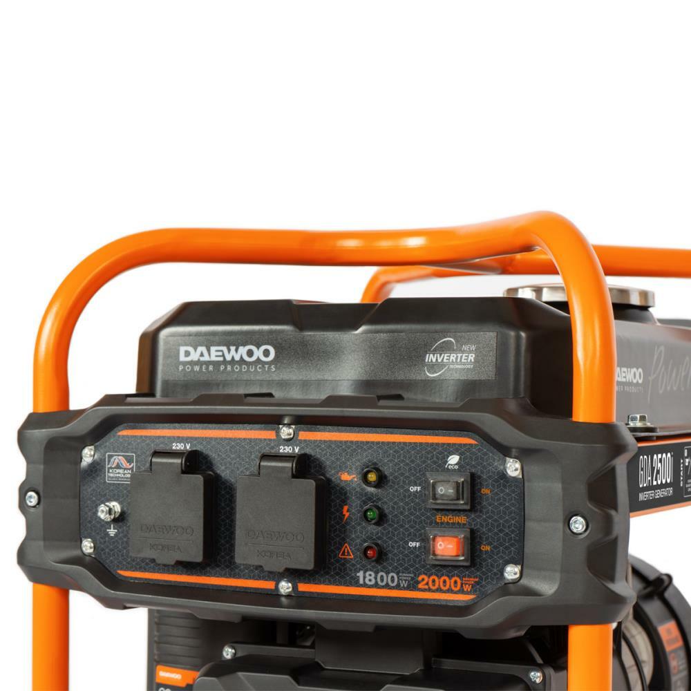 • Inverter Petrol Generator DAEWOO GDA 2500i - The Daewoo engine for professionals - Quick start - Voltage Indicator - The over-current smart protection - Low-oil level shutdown - Low noise level - Inverter technology - Metal fuel tank - The copper alternator