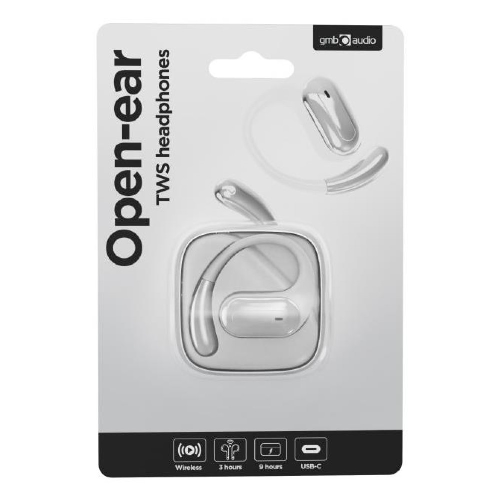 Summary Gembird OWS-01-BK. Product type: Headphones. Connectivity technology: Wireless, Bluetooth. Recommended usage: Calls/Music. Wireless range: 10 m. Cable length: 0.2 m. Weight: 45 g. Product colour: Silver, White