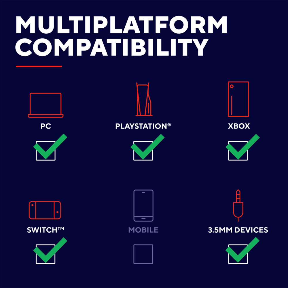 Gaming headsetMicrophonePop filter1.2m audio cable1m extension cableUser guide