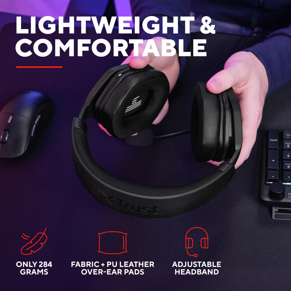 Trust GXT492 Carus. Product type: Headset. Connectivity technology: Wired. Recommended usage: Gaming. Headphone frequency: 20 - 20000 Hz. Cable length: 1.2 m. Weight: 284 g. Product colour: Black