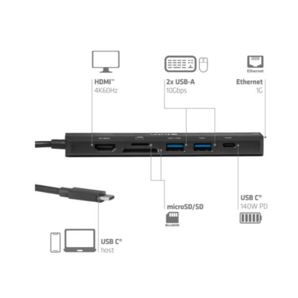 I/O HUB 7IN1 USB-C HDMI/140W CSV-2555 CLUB3D