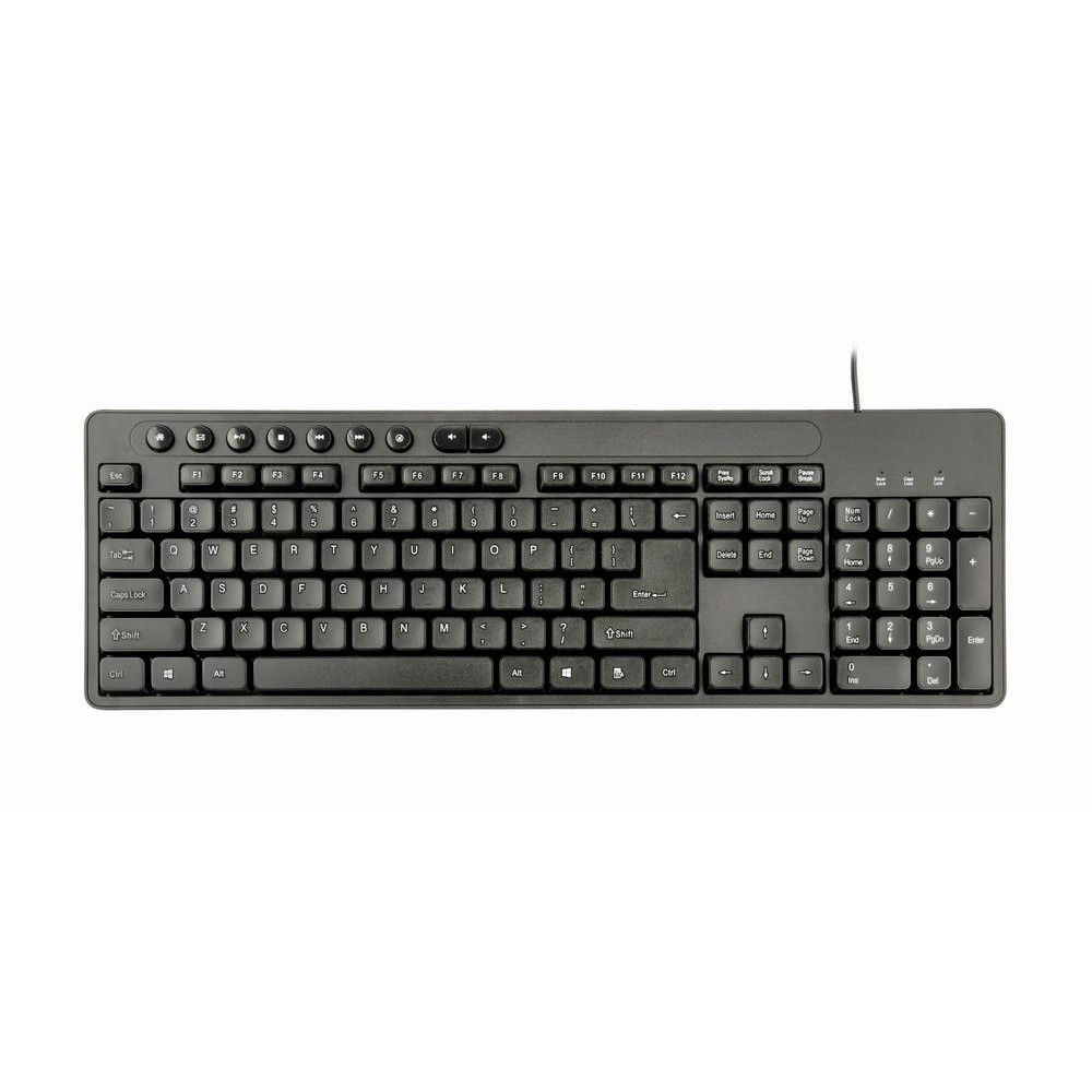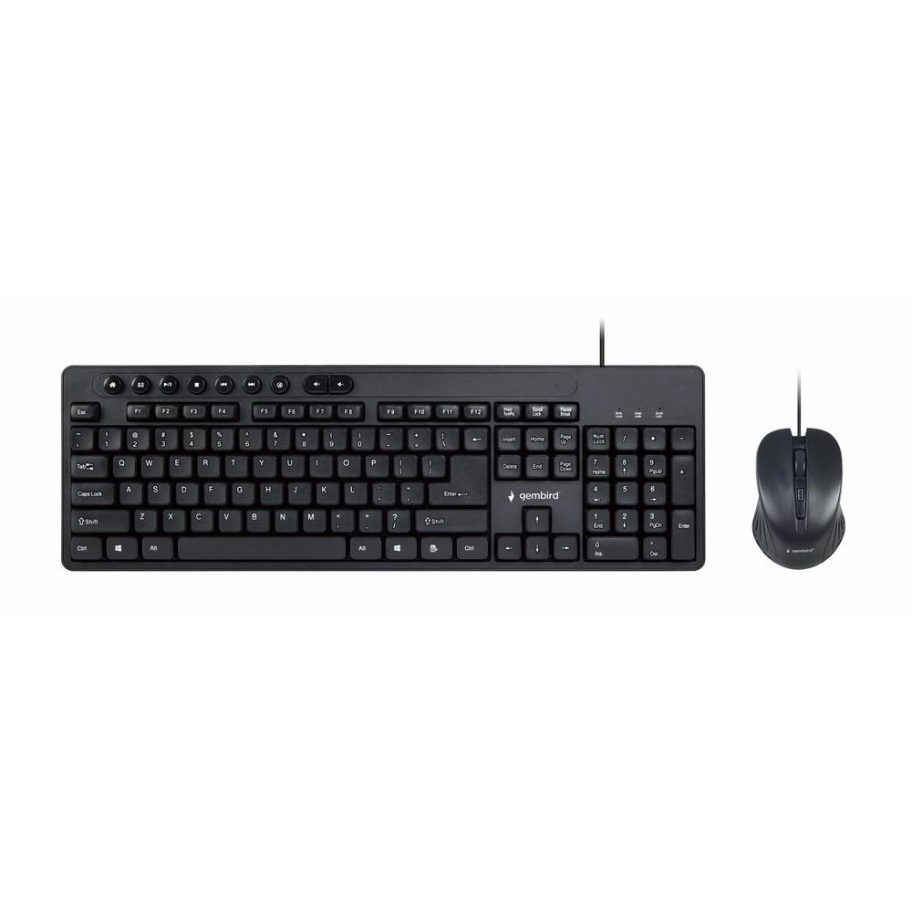 Gembird KBS-UM-04. Keyboard form factor: Full-size (100%). Keyboard style: Straight. Connectivity technology: Wired, Device interface: USB, Keyboard layout: QWERTY, Keyboard number of keys: 111. Cable length: 1.5 m. Recommended usage: Universal. Product colour: Black. Mouse included