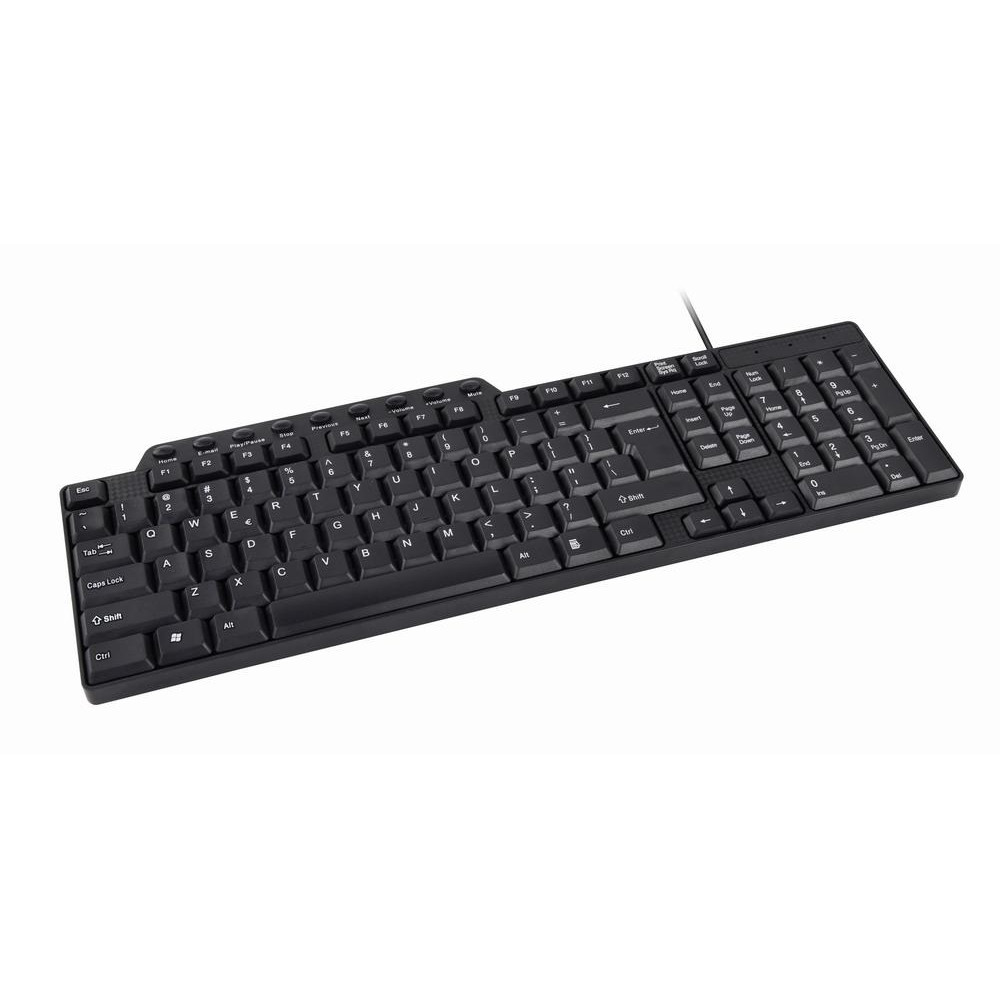 Gembird KB-UM-104. Keyboard form factor: Full-size (100%). Keyboard style: Straight. Connectivity technology: Wired, Device interface: USB, Keyboard layout: QWERTY, Keyboard number of keys: 111. Cable length: 1.3 m. Recommended usage: Universal. Product colour: Black