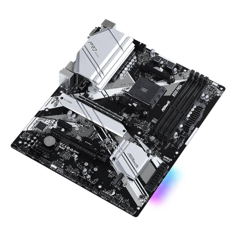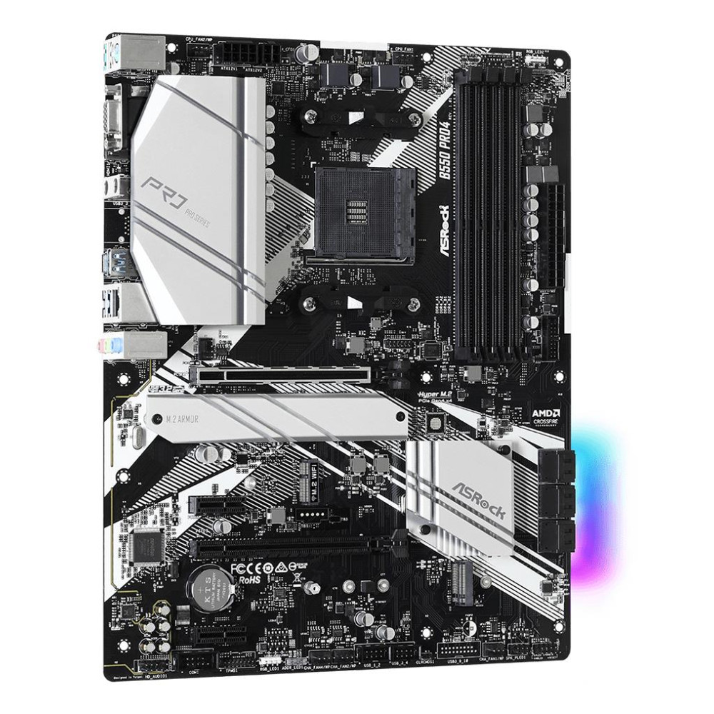 Asrock B550 Pro4. Processor manufacturer: AMD, Processor socket: Socket AM4, Compatible processor series: AMD Ryzen 3000 Series. Supported memory types: DDR4-SDRAM, Maximum internal memory: 128 GB, Memory slots type: DIMM. Supported storage drive interfaces: M.2, SATA III, Supported storage drive types: HDD & SSD, RAID levels: 0, 1, 10. Parallel processing technology support: CrossFireX, Quad-GPU CrossFireX. Ethernet interface type: Gigabit Ethernet, LAN controller: Realtek RTL8111H