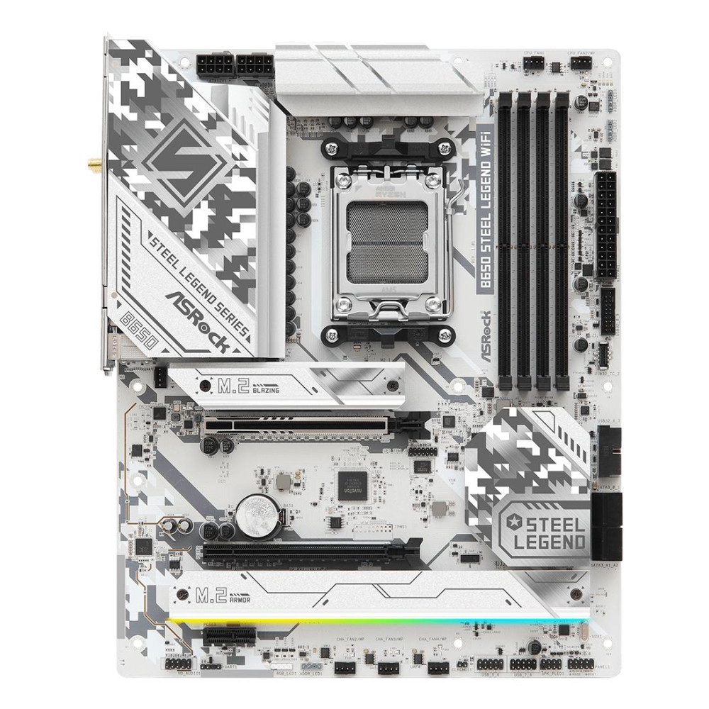 Summary Asrock B650 Steel Legend WiFi. Processor manufacturer: AMD, Processor socket: Socket AM5, Compatible processor series: AMD Ryzen 7000 Series. Supported memory types: DDR5-SDRAM, Maximum internal memory: 192 GB, Memory slots type: DIMM. Supported storage drive interfaces: M.2, SATA III, Supported storage drive types: HDD & SSD, RAID levels: 0, 1, 10. Graphics card family: AMD. Ethernet interface type: 2.5 Gigabit Ethernet, LAN controller: Dragon RTL8125BG, Top Wi-Fi standard: Wi-Fi 6E (802.11ax)