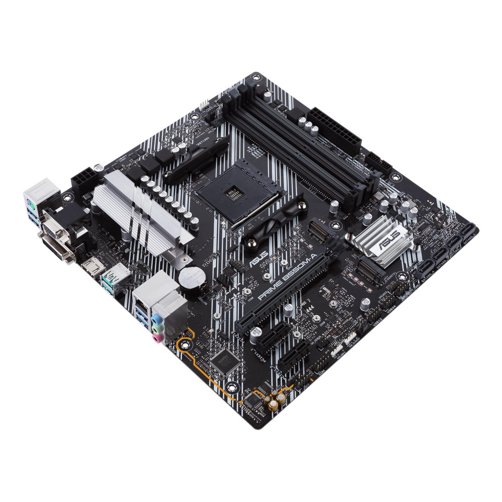 Summary ASUS PRIME B550M-A. Processor manufacturer: AMD, Processor socket: Socket AM4, Compatible processor series: AMD Ryzen 3000 Series. Supported memory types: DDR4-SDRAM, Maximum internal memory: 128 GB, Memory slots type: DIMM. Supported storage drive interfaces: M.2, SATA. LAN controller: Realtek 8111H. Motherboard form factor: micro ATX, Motherboard chipset family: AMD, Motherboard chipset: AMD B550