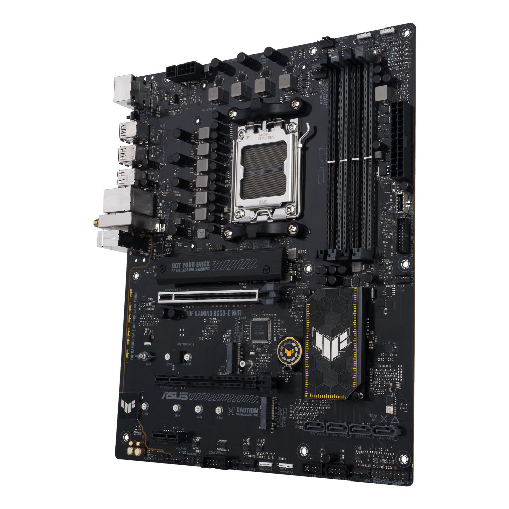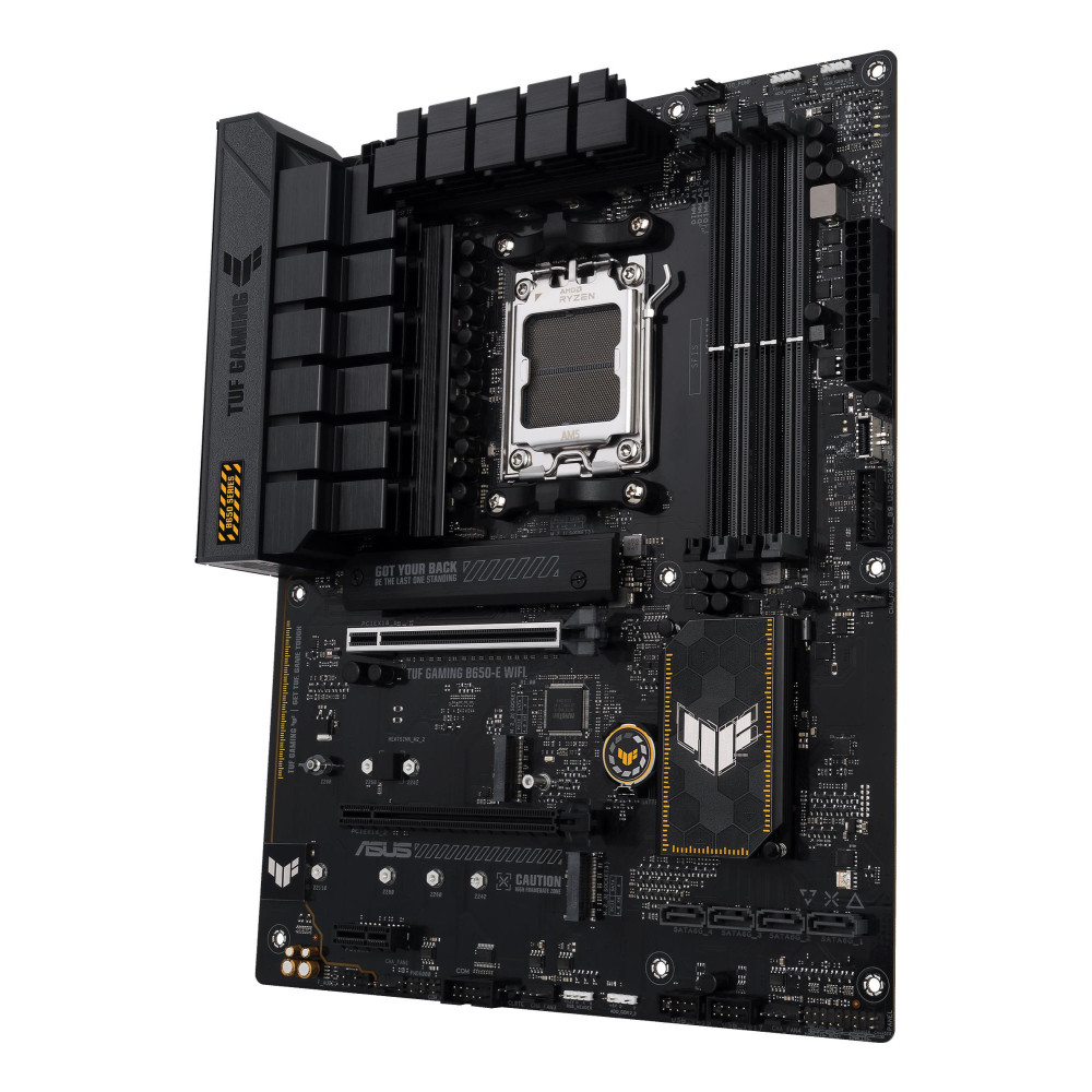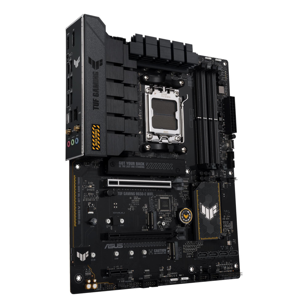 Summary ASUS TUF GAMING B650-E WIFI. Processor manufacturer: AMD, Processor socket: Socket AM5, Supported processor sockets: Socket AM5. Supported memory types: DDR5-SDRAM, Maximum internal memory: 192 GB, Memory slots type: DIMM. Supported storage drive interfaces: M.2, SATA III, Supported storage drive types: HDD & SSD, RAID levels: 0, 1, 10. Ethernet interface type: 2.5 Gigabit Ethernet, Top Wi-Fi standard: Wi-Fi 6E (802.11ax), Wi-Fi standards: 802.11a, 802.11b, 802.11g, Wi-Fi 4 (802.11n), Wi-Fi 5 (802.11ac), Wi-Fi 6 (802.11ax), Wi-Fi 6E.... Component for: PC, Motherboard form factor: ATX, Motherboard chipset family: AMD