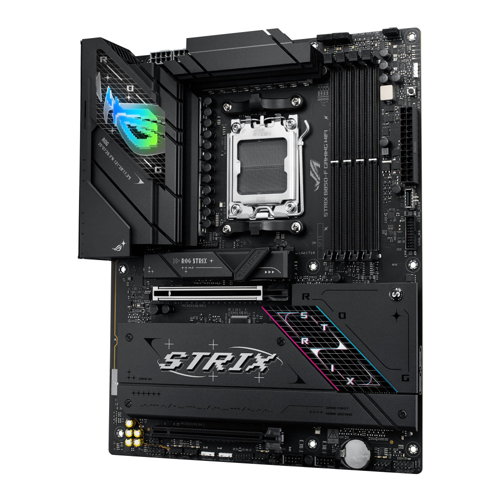 Summary ASUS ROG STRIX B850-F GAMING WIFI. Производитель процессора: AMD, Сокет процессора: Socket AM5, Совместимые серии процессоров: AMD Ryzen 7000 Series, AMD Ryzen 8000 Series, AMD Ryzen 9000 Series. Поддерживаемые типы памяти: DDR5-SDRAM, Максимальная внутренняя память: 192 GB, Тип слотов памяти: DIMM. Поддерживаемые интерфейсы носителя: M.2, SATA III, Поддерживаемые типы накопителей: HDD & SSD, Уровни RAID: 0, 1, 5, 10. Максимальное разрешение: 7680 x 4320 пикселей. Тип Ethernet интерфейса: 2.5 Gigabit Ethernet, Основной стандарт Wi-Fi: Wi-Fi 7 (802.11be), Wi-Fi стандартов: Wi-Fi 7 (802.11be)
