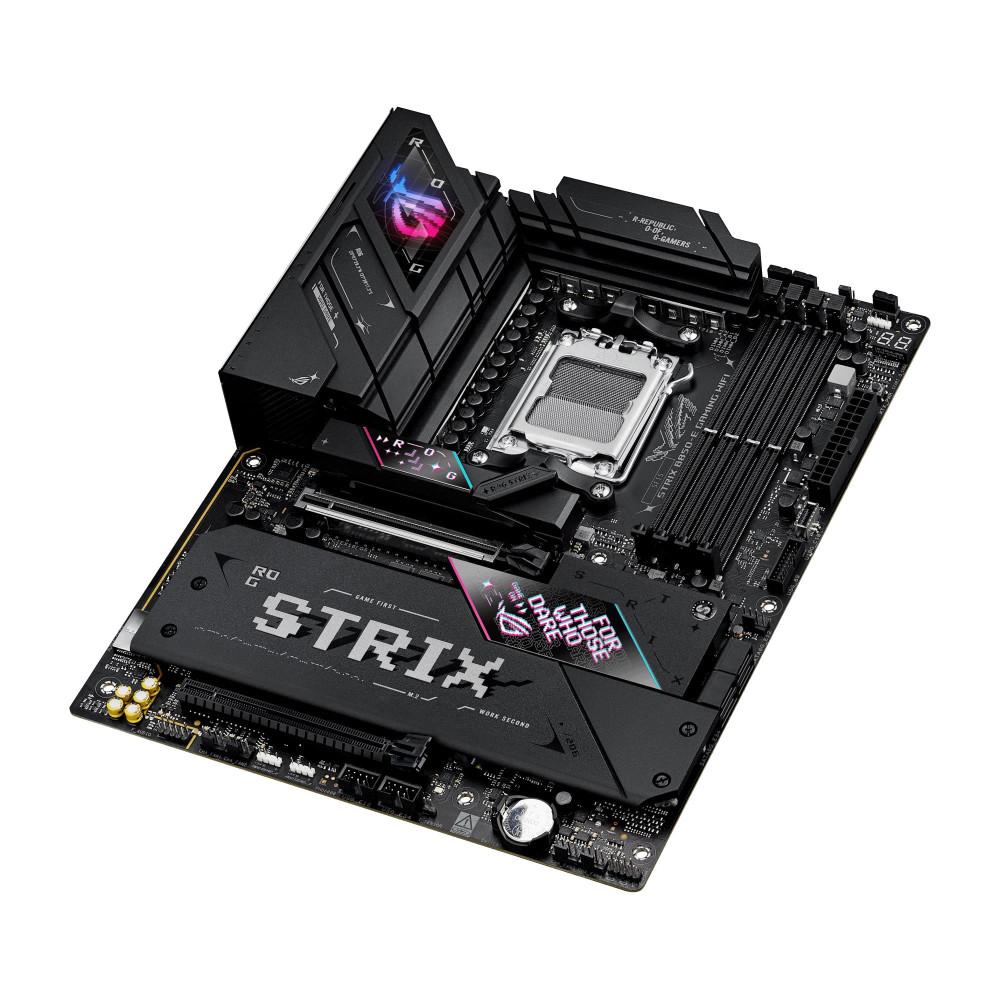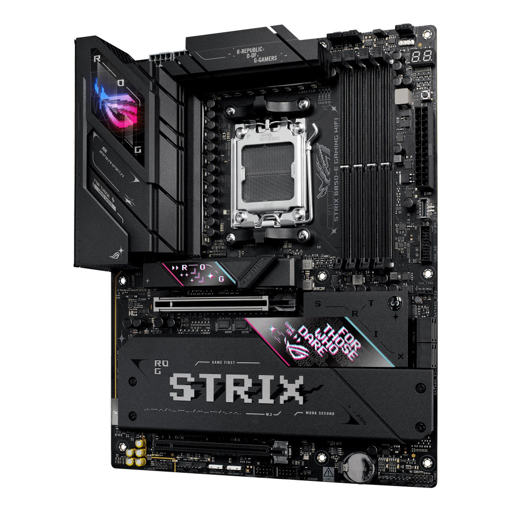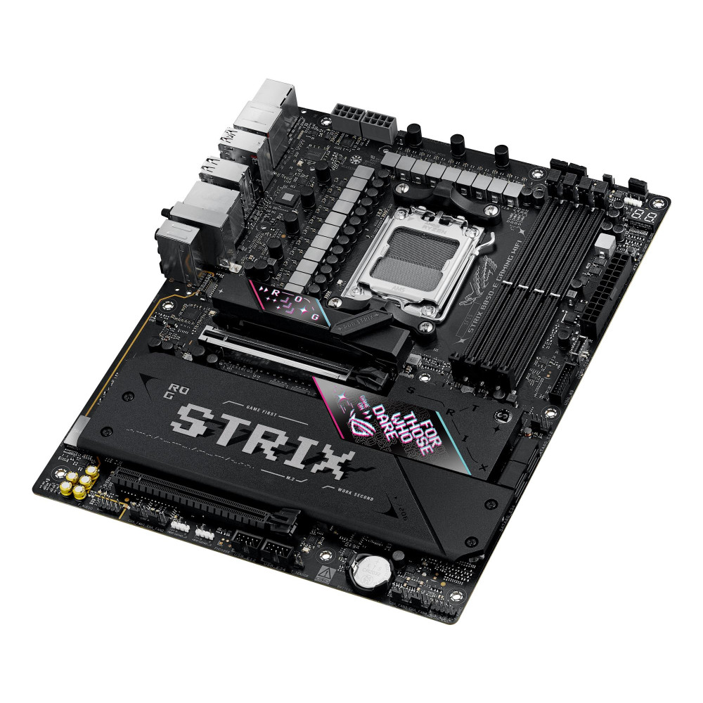 ASUS ROG STRIX B850-E GAMING WIFI. Производитель процессора: AMD, Сокет процессора: Socket AM5, Совместимые серии процессоров: AMD Ryzen 7000 Series, AMD Ryzen 8000 Series, AMD Ryzen 9000 Series. Поддерживаемые типы памяти: DDR5-SDRAM, Максимальная внутренняя память: 192 GB, Тип слотов памяти: DIMM. Поддерживаемые интерфейсы носителя: M.2, SATA III, Поддерживаемые типы накопителей: HDD & SSD, Уровни RAID: 0, 1, 5, 10. Максимальное разрешение: 7680 x 4320 пикселей. Тип Ethernet интерфейса: 5 Gigabit Ethernet, Основной стандарт Wi-Fi: Wi-Fi 7 (802.11be), Wi-Fi стандартов: Wi-Fi 7 (802.11be)