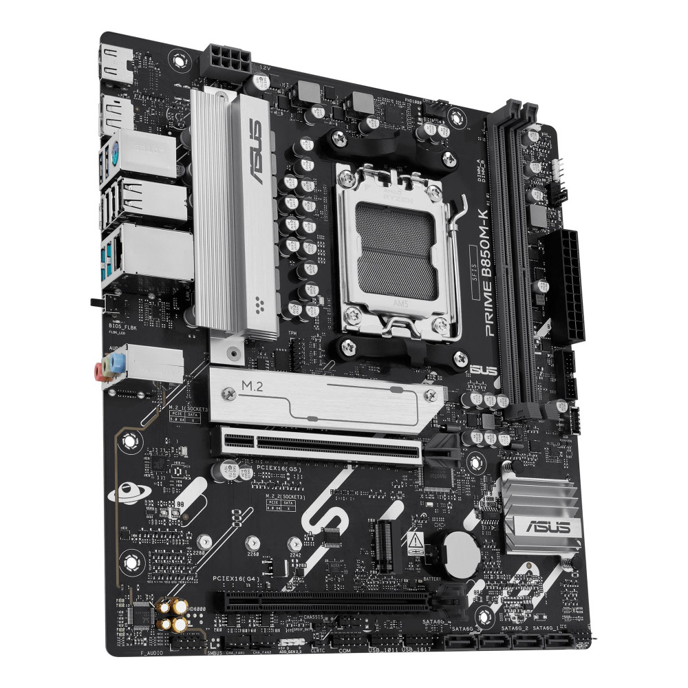 ASUS PRIME B850M-K. Processor manufacturer: AMD, Processor socket: Socket AM5, Compatible processor series: AMD Ryzen 7000 Series, AMD Ryzen 8000 Series, AMD Ryzen 9000 Series. Supported memory types: DDR5-SDRAM, Maximum internal memory: 128 GB, Memory slots type: DIMM. Supported storage drive interfaces: M.2, SATA III, Supported storage drive types: HDD & SSD, RAID levels: 0, 1, 5, 10. Ethernet interface type: 2.5 Gigabit Ethernet. Component for: PC, Motherboard form factor: micro ATX, Motherboard chipset family: AMD
