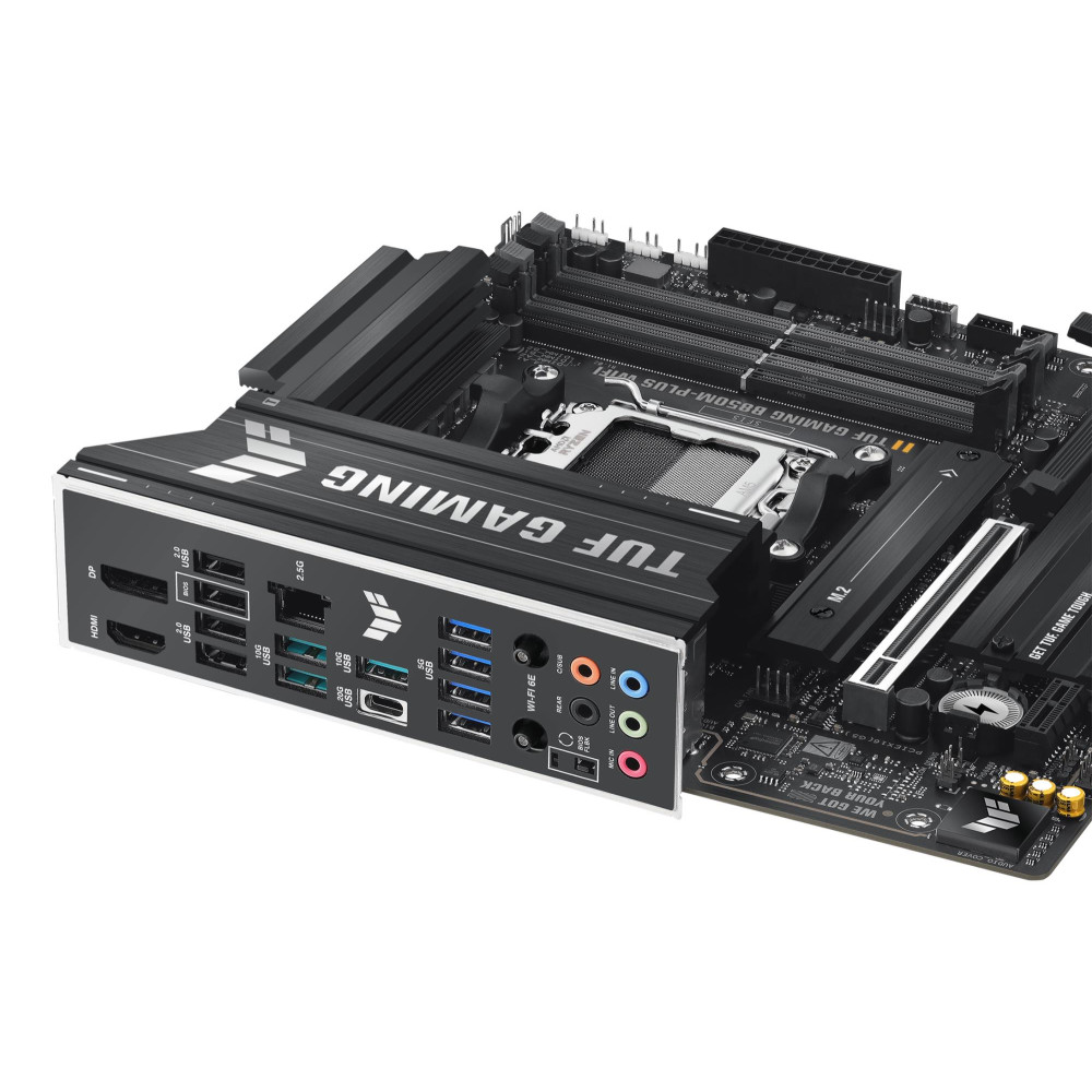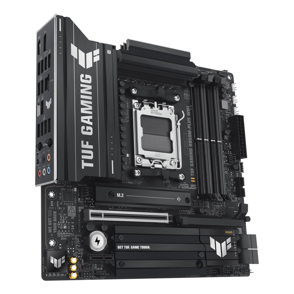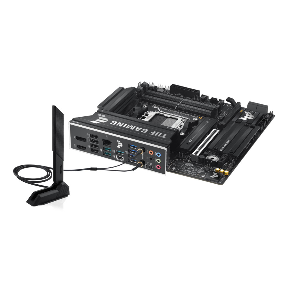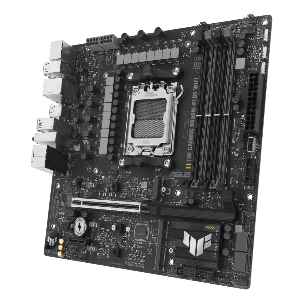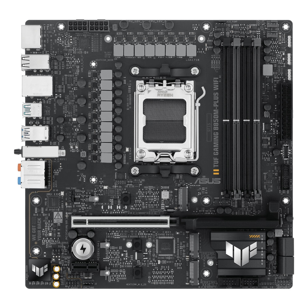 ASUS TUF GAMING B850M-PLUS WIFI. Processor manufacturer: AMD, Processor socket: Socket AM5, Compatible processor series: AMD Ryzen 7000 Series, AMD Ryzen 8000 Series, AMD Ryzen 9000 Series. Supported memory types: DDR5-SDRAM, Maximum internal memory: 192 GB, Memory slots type: DIMM. Supported storage drive interfaces: M.2, SATA III, Supported storage drive types: HDD & SSD, RAID levels: 0, 1, 5, 10. Ethernet interface type: 2.5 Gigabit Ethernet, Top Wi-Fi standard: Wi-Fi 6E (802.11ax), Wi-Fi standards: Wi-Fi 6E (802.11ax). Component for: PC, Motherboard form factor: micro ATX, Motherboard chipset family: AMD