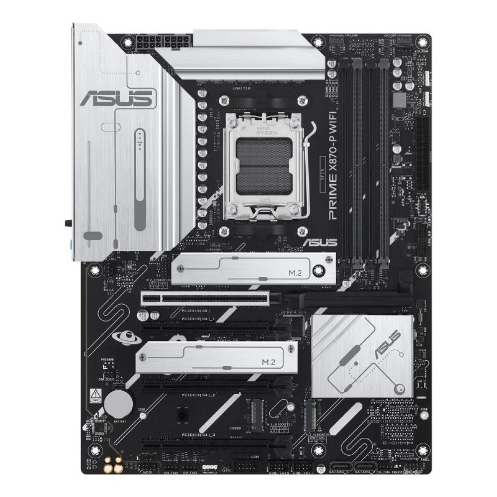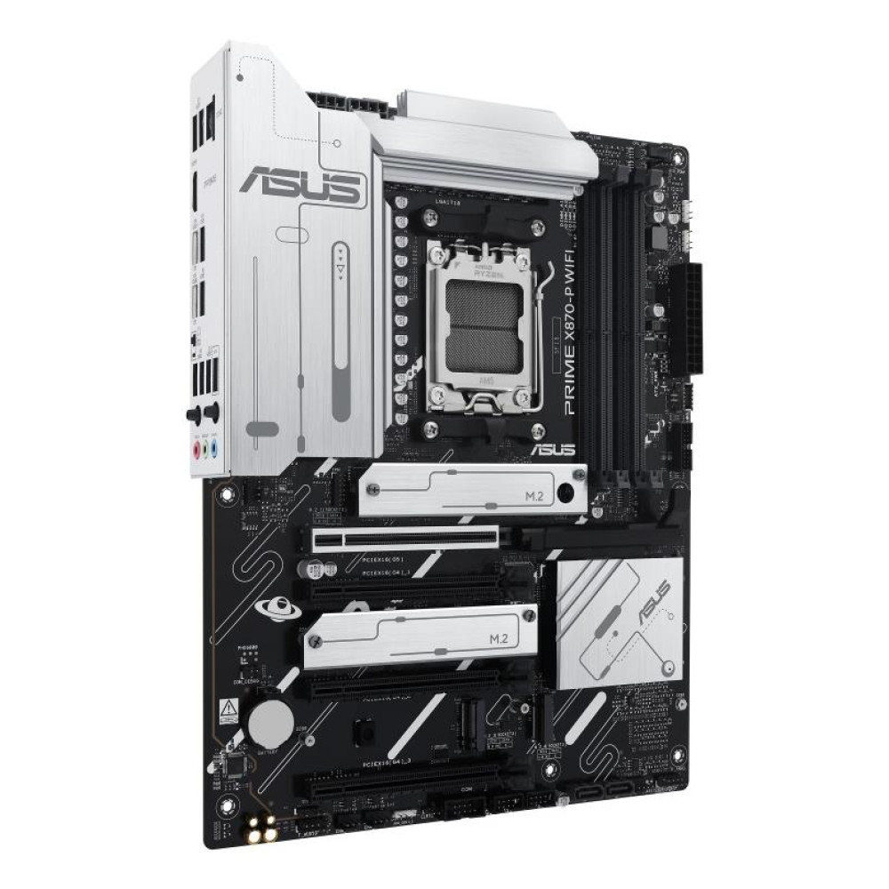 Summary ASUS Prime X870-P WIFI. Processor manufacturer: AMD, Processor socket: Socket AM5, Compatible processor series: AMD Ryzen 7000 Series, AMD Ryzen 8000 Series, AMD Ryzen 9000 Series. Supported memory types: DDR5-SDRAM, Maximum internal memory: 192 GB, Memory slots type: DIMM. Supported storage drive interfaces: M.2, SATA III, Supported storage drive types: HDD & SSD, RAID levels: 0, 1, 5, 10. DisplayPort version: 1.4a. Ethernet interface type: 2.5 Gigabit Ethernet, Top Wi-Fi standard: Wi-Fi 7 (802.11be), Wi-Fi standards: 802.11a, 802.11b, 802.11g, Wi-Fi 4 (802.11n), Wi-Fi 5 (802.11ac), Wi-Fi 6 (802.11ax), Wi-Fi 6E...