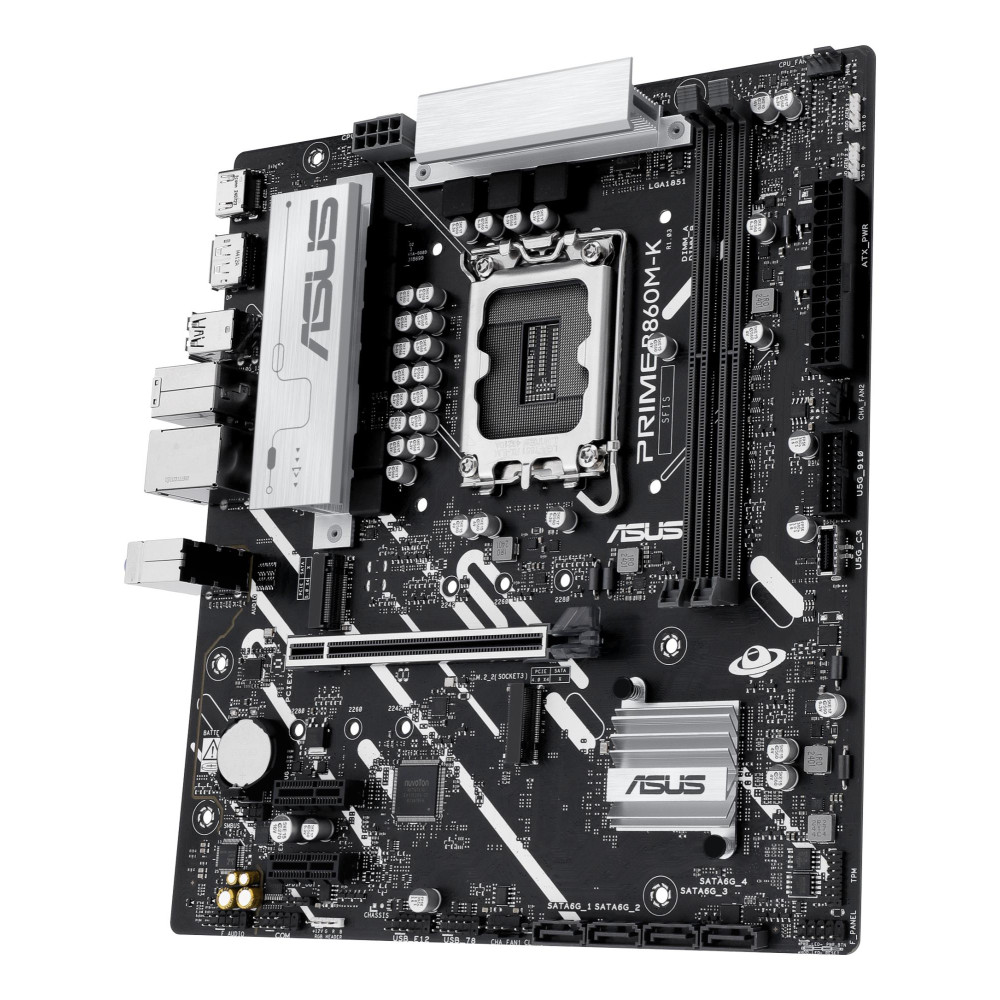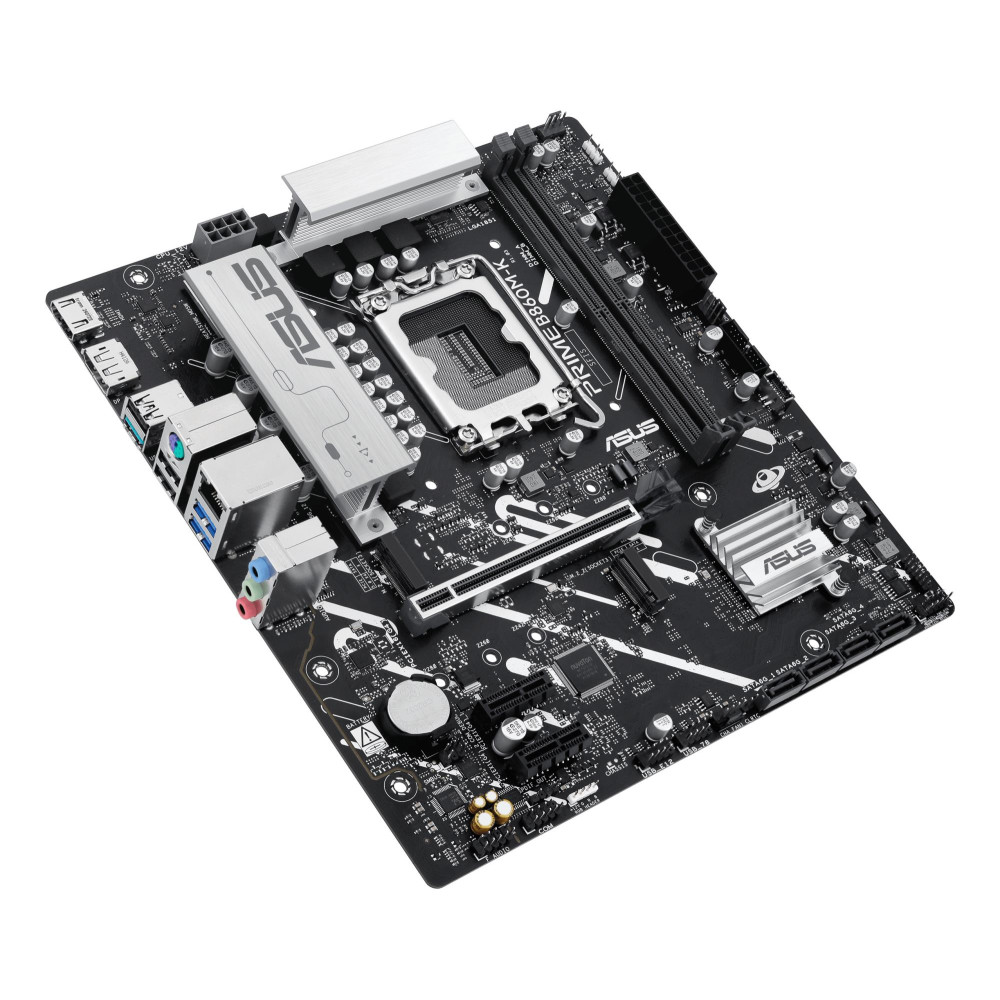 ASUS PRIME B860M-K. Processor manufacturer: Intel, Processor socket: LGA 1851 (Socket V1), Compatible processor series: Intel Core Ultra (Series 2). Supported memory types: DDR5-SDRAM, Maximum internal memory: 128 GB, Memory slots type: DIMM. Supported storage drive interfaces: M.2, SATA III, Supported storage drive types: HDD & SSD, RAID levels: 0, 1, 5, 10. Ethernet interface type: 2.5 Gigabit Ethernet. Component for: PC, Motherboard form factor: micro ATX, Motherboard chipset family: Intel
