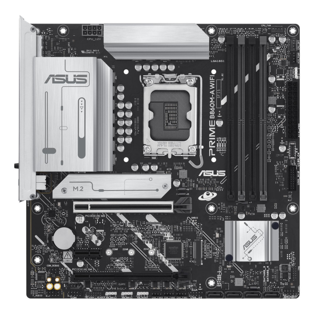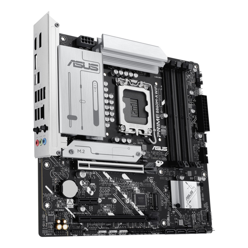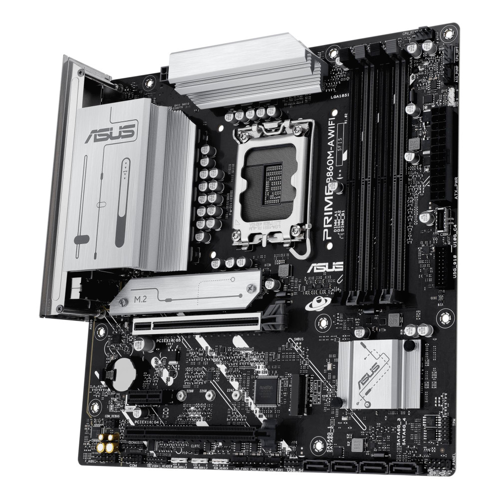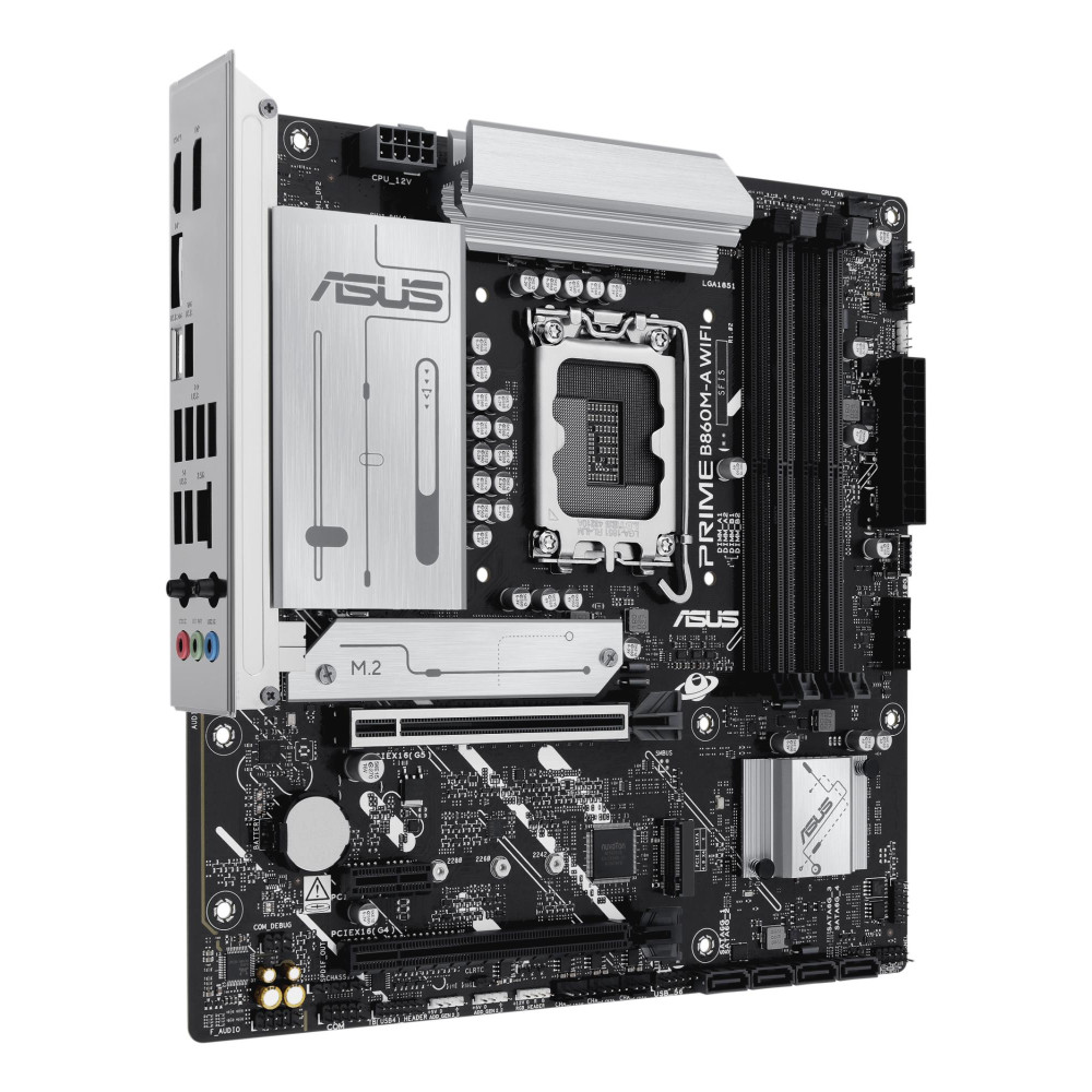 ASUS PRIME B860M-A WIFI. Processor manufacturer: Intel, Processor socket: LGA 1851 (Socket V1), Compatible processor series: Intel Core Ultra (Series 2). Supported memory types: DDR5-SDRAM, Maximum internal memory: 256 GB, Memory slots type: DIMM. Supported storage drive interfaces: M.2, SATA III, Supported storage drive types: HDD & SSD, RAID levels: 0, 1, 5, 10. Ethernet interface type: 2.5 Gigabit Ethernet, Top Wi-Fi standard: Wi-Fi 6E (802.11ax), Wi-Fi standards: Wi-Fi 6E (802.11ax). Component for: PC, Motherboard form factor: micro ATX, Motherboard chipset family: Intel