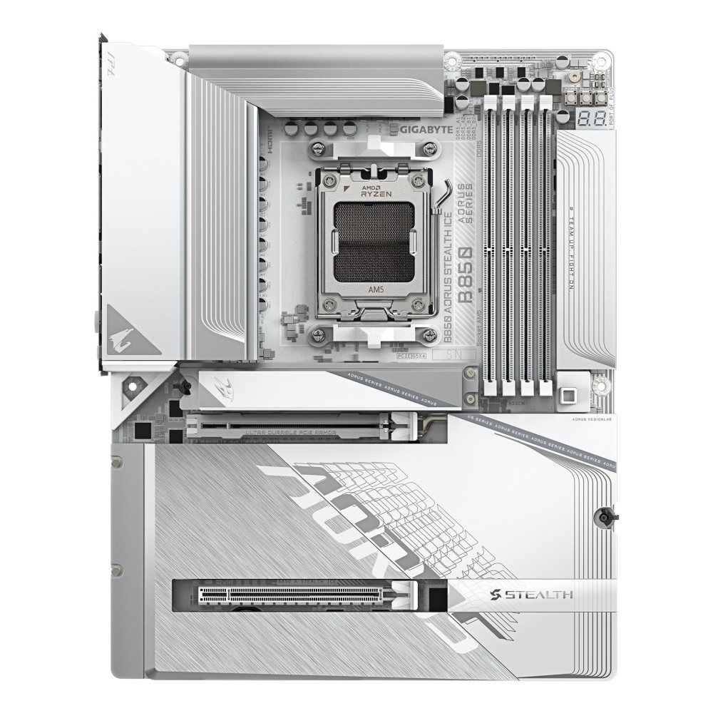 GIGABYTE B850 AORUS STEALTH ICE. Производитель процессора: AMD, Сокет процессора: Socket AM5, Совместимые серии процессоров: AMD Ryzen 7000 Series, AMD Ryzen 8000 Series, AMD Ryzen 9000 Series. Поддерживаемые типы памяти: DDR5-SDRAM, Максимальная внутренняя память: 256 GB, Тип слотов памяти: DIMM. Поддерживаемые интерфейсы носителя: M.2, PCI Express 4.0, PCI Express 5.0, SATA III, Поддерживаемые типы накопителей: HDD & SSD, Уровни RAID: 0, 1, 5, 10. Максимальное разрешение: 4096 x 2160 пикселей. Тип Ethernet интерфейса: 5 Gigabit Ethernet, Контроллер LAN: Realtek RTL8126, Основной стандарт Wi-Fi: Wi-Fi 7 (802.11be)