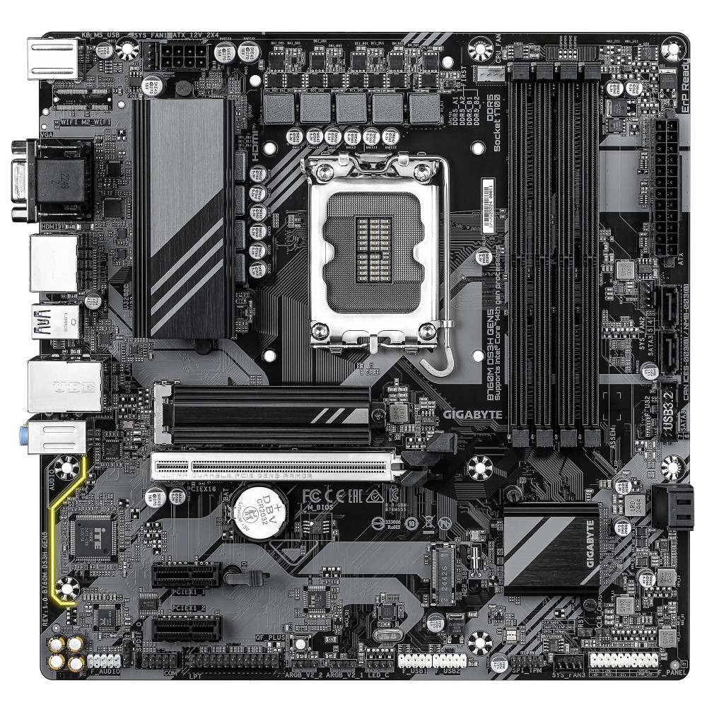 GIGABYTE B760M DS3H GEN5. Производитель процессора: Intel, Сокет процессора: LGA 1700, Совместимые серии процессоров: Процессор Intel® Celeron®, Intel Core i3 12th Gen, Intel Core i3 13th Gen, Intel Core.... Поддерживаемые типы памяти: DDR5-SDRAM, Максимальная внутренняя память: 256 GB, Тип слотов памяти: DIMM. Поддерживаемые интерфейсы носителя: M.2, PCI Express 4.0, SATA III, Поддерживаемые типы накопителей: HDD & SSD, Уровни RAID: 0, 1, 5, 10. Максимальное разрешение: 4096 x 2304 пикселей. Тип Ethernet интерфейса: 2.5 Gigabit Ethernet, Контроллер LAN: Realtek RTL8125