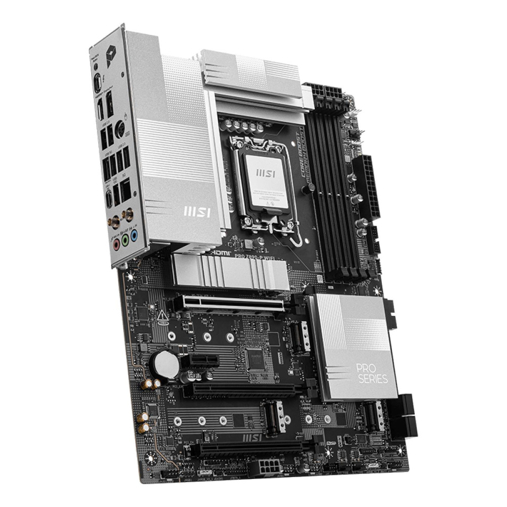 MSI PRO Z890-P WIFI. Processor manufacturer: Intel, Processor socket: LGA 1851 (Socket V1), Compatible processor series: Intel Core Ultra (Series 2). Supported memory types: DDR5-SDRAM, Maximum internal memory: 256 GB, Memory slots type: DIMM. Supported storage drive interfaces: M.2, SATA III, Supported storage drive types: HDD & SSD, RAID levels: 0, 1, 5, 10. Ethernet interface type: 5 Gigabit Ethernet, Top Wi-Fi standard: Wi-Fi 7 (802.11be), Wi-Fi standards: 802.11a, 802.11b, 802.11g, Wi-Fi 4 (802.11n), Wi-Fi 5 (802.11ac), Wi-Fi 6 (802.11ax), Wi-Fi 6E.... Component for: PC, Motherboard form factor: ATX, Motherboard chipset family: Intel