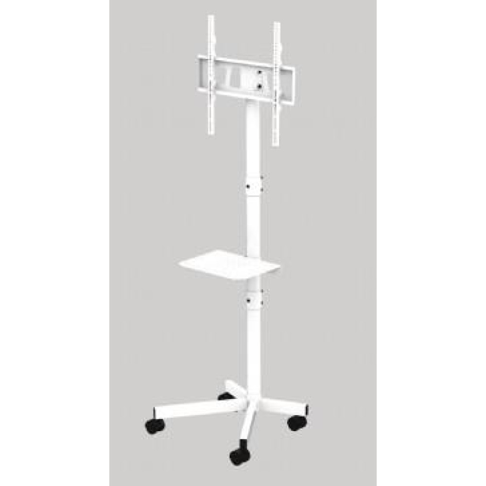 Gembird TV floor stand with caster wheels, 32 - 55. Maximum weight capacity: 30 kg, Minimum screen size: 81.3 cm (32), Maximum screen size: 139.7 cm (55), Minimum VESA mount: 100 x 100 mm, Maximum VESA mount: 400 x 400 mm. Tilt angle range: -5 - 0°. Product colour: White