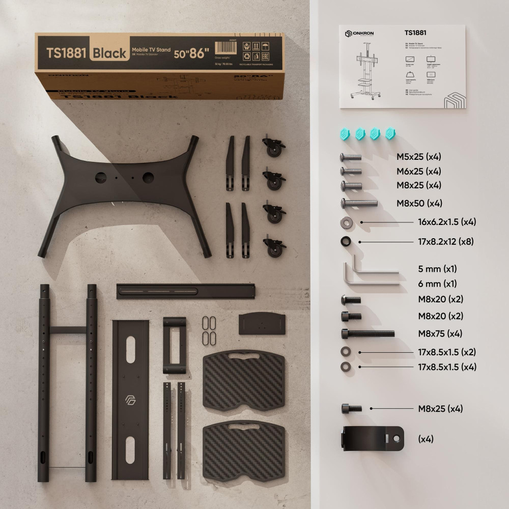 TV SET ACC MOBILE STAND/50-86/BLACK TS1881-B ONKRON