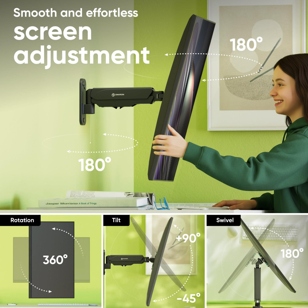 Summary ONKRON G120-B. Maximum weight capacity: 8 kg, Minimum screen size: 33 cm (13"), Maximum screen size: 86.4 cm (34"), Minimum VESA mount: 75 x 75 mm, Maximum VESA mount: 100 x 100 mm. Tilt angle range: -45 - 90°. Product colour: Black