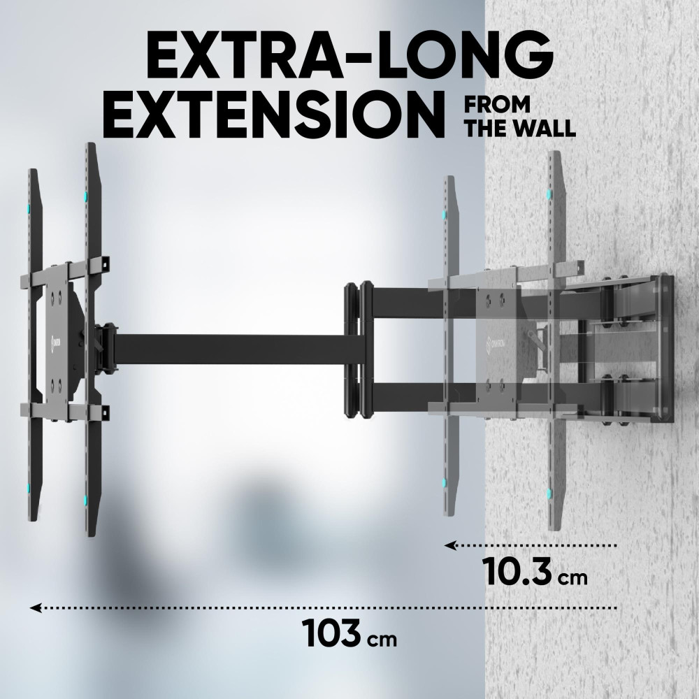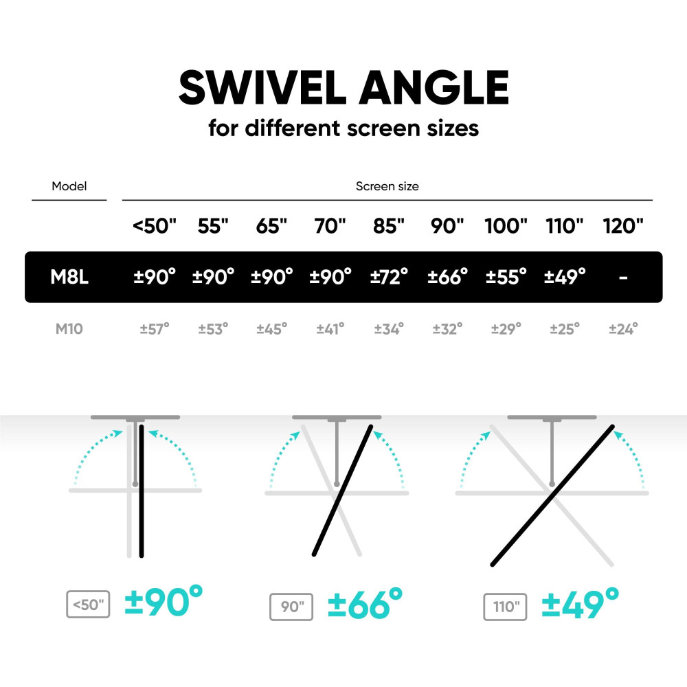 ONKRON M8L-B. Maximum weight capacity: 100 kg, Minimum screen size: 106.7 cm (42), Maximum screen size: 2.54 m (100), Minimum VESA mount: 100 x 100 mm, Maximum VESA mount: 800 x 600 mm. Tilt angle range: -5 - 15°, Angle of rotation: 90°, Distance to the wall (min): 10.3 cm, Distance to the wall (max): 103 cm. Product colour: Black