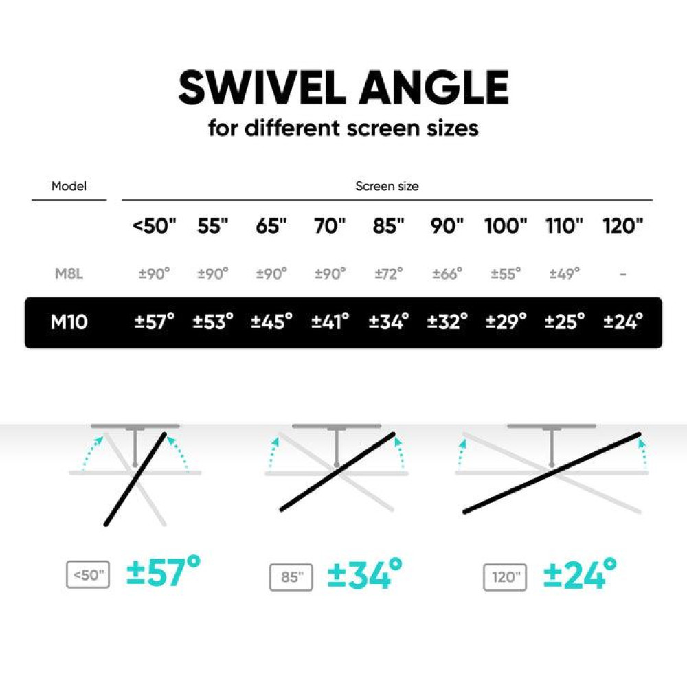 ONKRON Full Motion Wall Mount 42-120 max 220lbs, Black. Maximum weight capacity: 100 kg, Minimum screen size: 106.7 cm (42), Maximum screen size: 3.05 m (120), Minimum VESA mount: 200 x 100 mm, Maximum VESA mount: 1000 x 600 mm. Tilt angle range: -13 - 9°, Swivel angle range: -45 - 45°, Distance to the wall (min): 9 cm, Distance to the wall (max): 60 cm. Product colour: Black