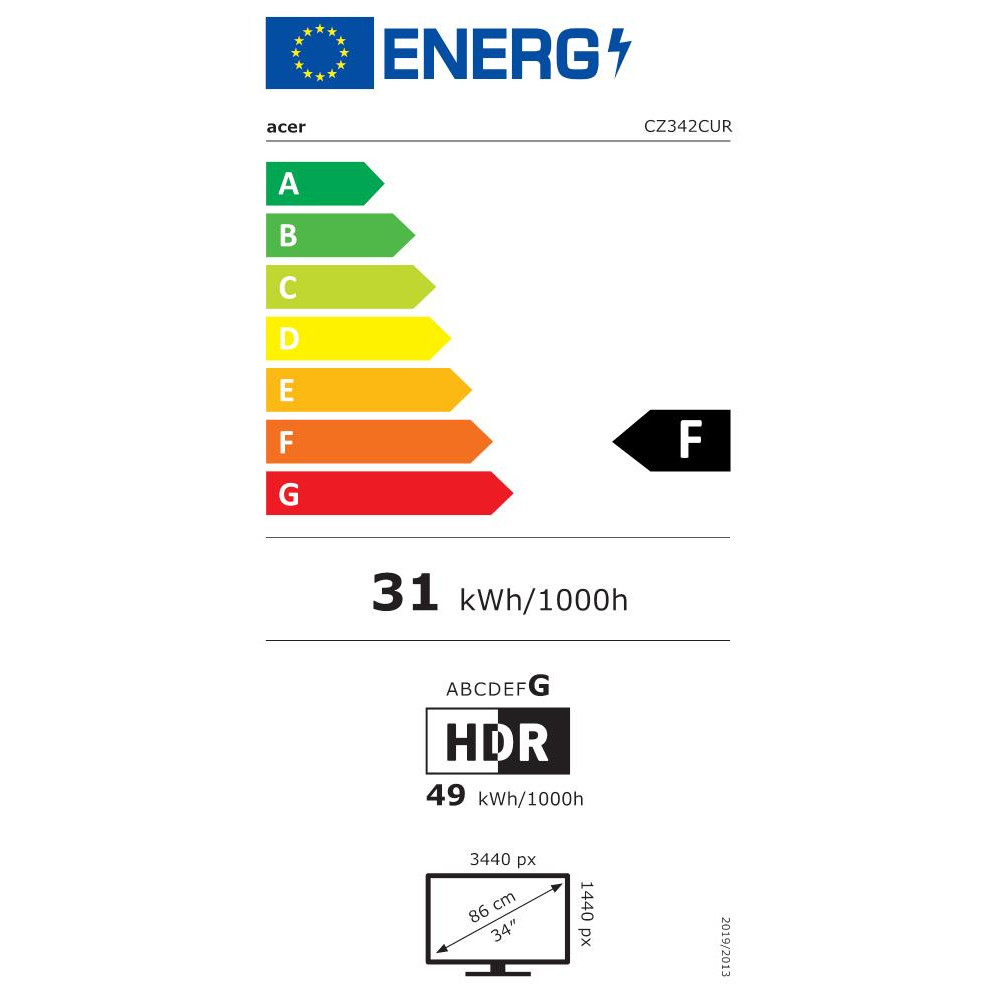 LCD Monitor, ACER, CZ342CURVbmiphuzx, 34, Gaming/Curved/21 : 9, Panel VA, 3440x1440, 21:9, 165 Hz, 0.5 ms, Speakers, Swivel, Pivot, Height adjustable, Tilt, Colour Black, UM.CC2EE.V01
