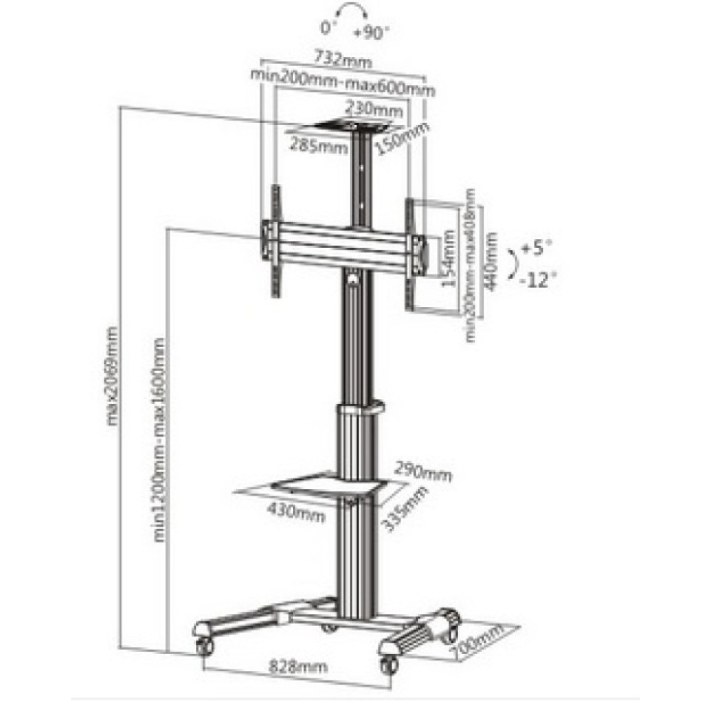 LH-GROUP FLOOR STAND WITH WHEELS 37-70"
