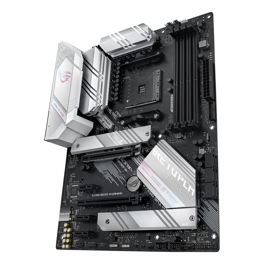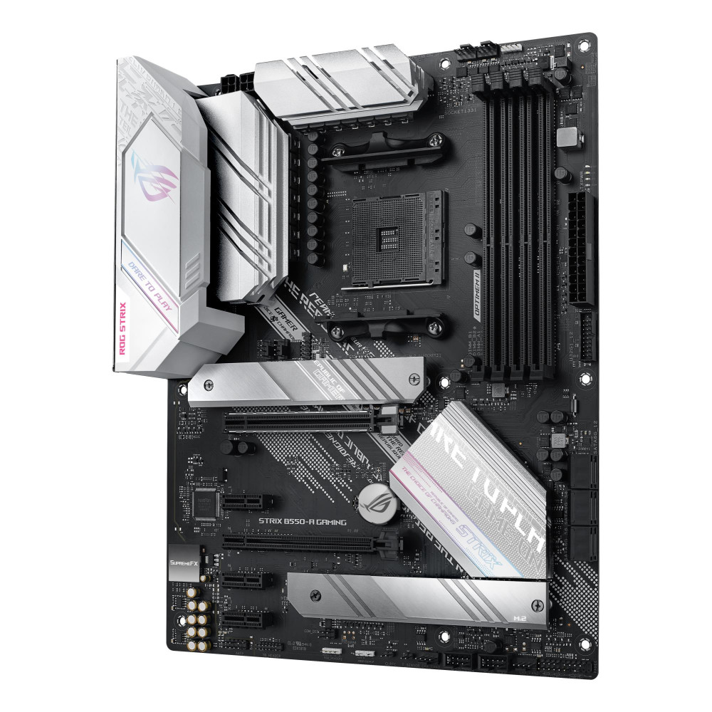 Summary ASUS ROG STRIX B550-A GAMING. Processor manufacturer: AMD, Processor socket: Socket AM4, Compatible processor series: AMD Ryzen™ 3. Supported memory types: DDR4-SDRAM, Maximum internal memory: 128 GB, Memory slots type: DIMM. Supported storage drive interfaces: PCI Express 3.0, RAID levels: 0, 1, 10. Parallel processing technology support: 2-Way CrossFireX. Component for: PC, Motherboard form factor: ATX, Motherboard chipset family: AMD