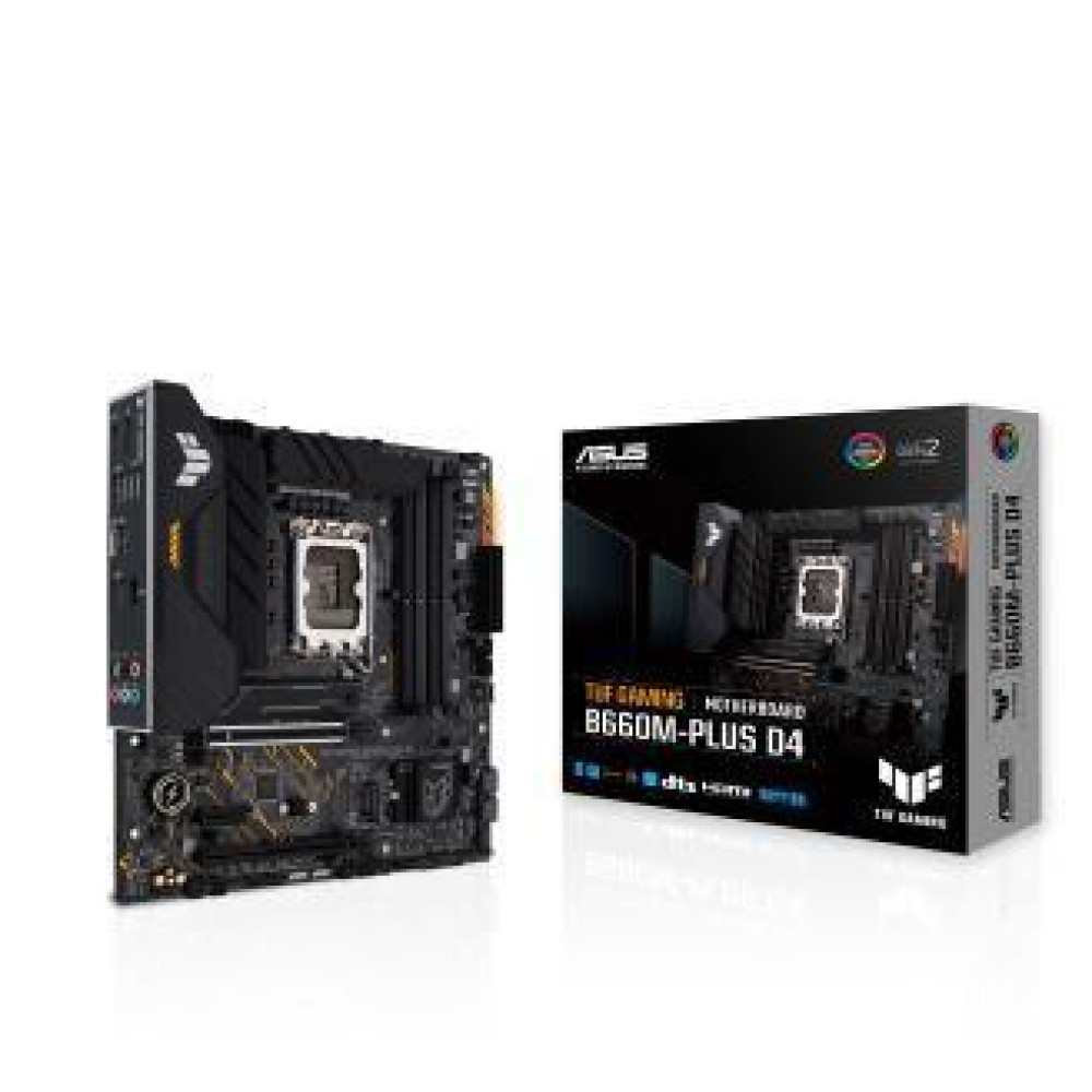 - - Intel® B660 (LGA 1700) mATX motherboard, 10+1 DrMOS Power stages , PCIe 5.0 support, DDR4 5333 (OC), Dual PCIe 4.0 M.2 Slots with Flexible Heatsink, Realtek 2.5Gb Ethernet, Rear USB 3.2 Gen 2x2 Type-C®, Front USB 3.2 Gen 1 Type-C®, Aura Sync, Two-way AI Noise Cancelation - Intel® LGA 1700 socket: Ready for 13th & 12th Gen Intel Core™ processors - Enhanced power solution: 10+1 DrMOS power stages, six-layer PCB, 8+4 ProCool sockets, military-grade TUF components and Digi+ VRM for maximum durability - Comprehensive cooling: Enlarged VRM heatsink, Stack Cool 3+, Flexible M.2 heatsink, PCH heatsink, hybrid fan headers and Fan Xpert 2+ - Latest connectivity: PCIe 5.0 slot, PCIe 4.0 M.2 slots, rear USB 3.2 Gen 2x2 Type-C®, front panel header for USB 3.2 Gen 1 Type-C® and Thunderbolt 4™ header support - Made for online gaming: Realtek 2.5Gb Ethernet, TUF LANGuard - Two-way AI Noise-Cancelation: Reduces background noise from the microphone and audio output for crystal-clear communication in games or video conferences