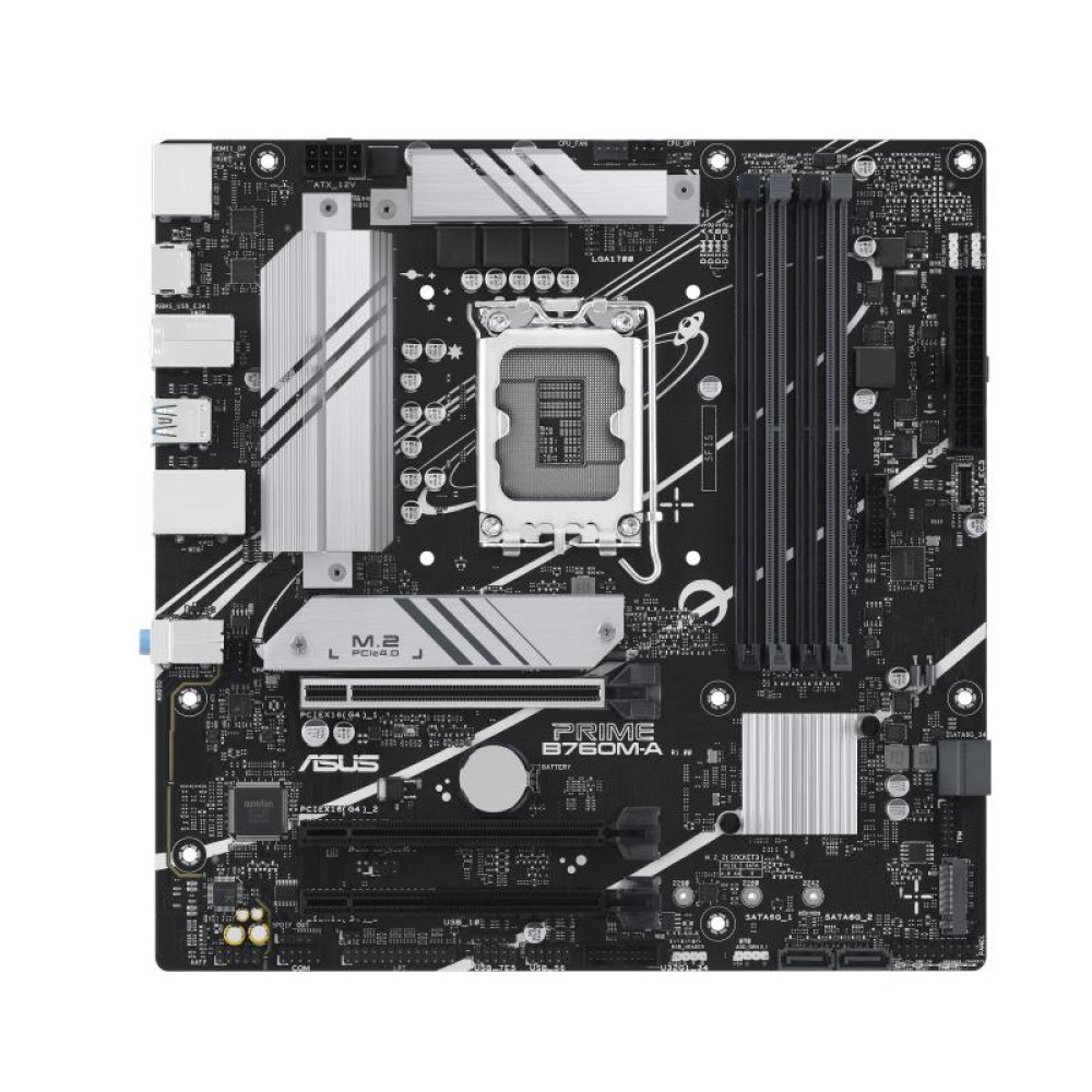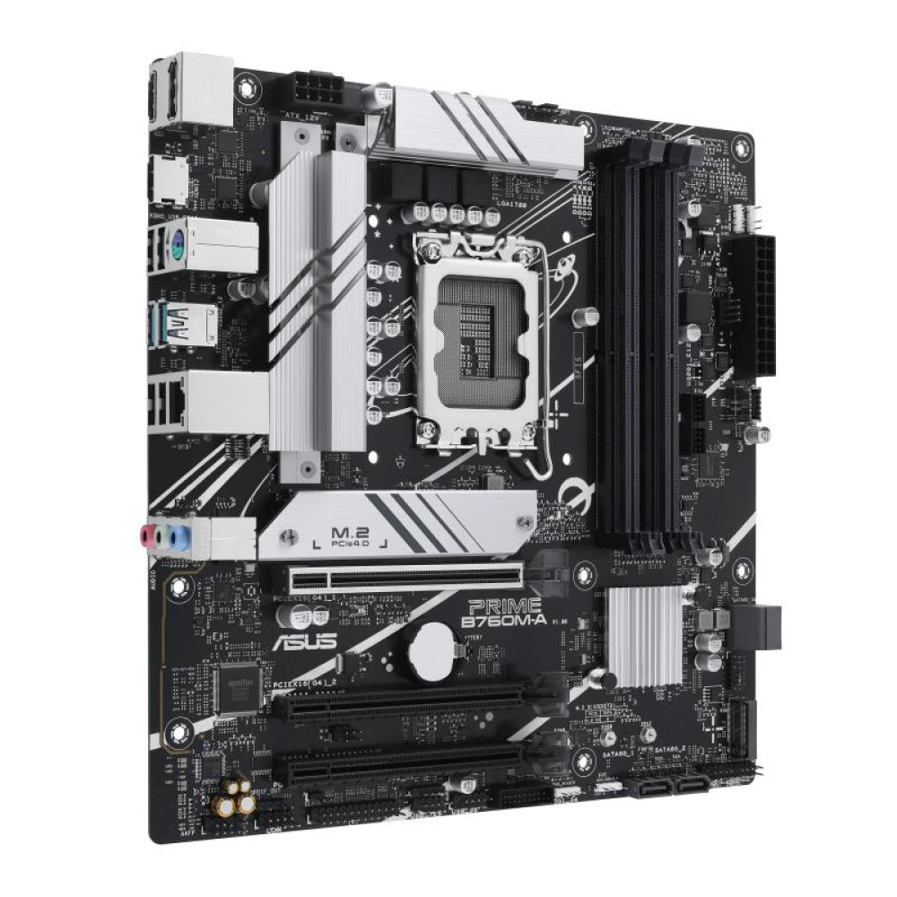 Mainboard, ASUS, Intel B760 Express, LGA1700, Micro-ATX, Memory DDR5, Memory slots 4, 2xPCI-Express 4.0 16x, 2xM.2, 1xHDMI, 2xDisplayPort, 4xUSB 2.0, 2xUSB 3.2, 1xPS/2, 1xRJ45, 3xAudio port, PRIMEB760M-A-CSM