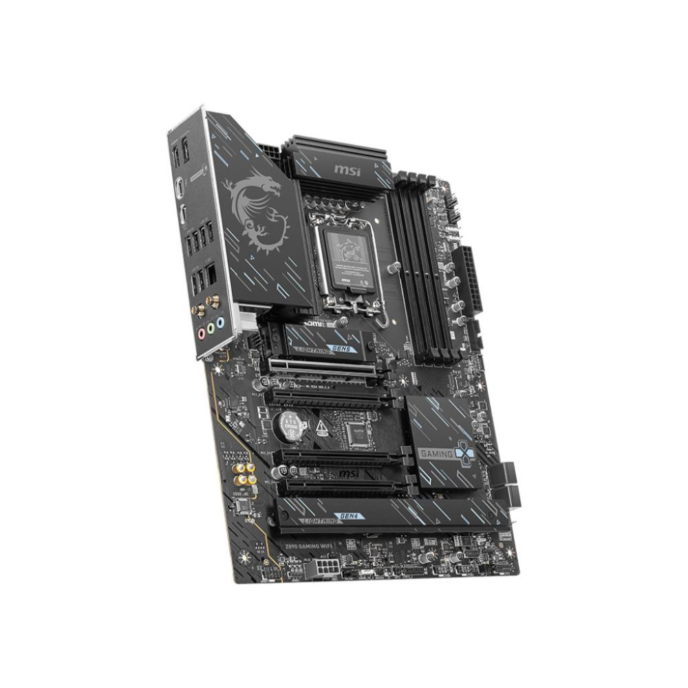 Summary MSI Z890 GAMING WIFI. Processor manufacturer: Intel, Processor socket: LGA 1851 (Socket V1), Compatible processor series: Intel Core Ultra (Series 2). Supported memory types: DDR5-SDRAM, Maximum internal memory: 256 GB, Memory slots type: DIMM. Supported storage drive interfaces: M.2, SATA III, Supported storage drive types: HDD & SSD, RAID levels: 0, 1, 5, 10. Ethernet interface type: 5 Gigabit Ethernet, Top Wi-Fi standard: Wi-Fi 7 (802.11be), Wi-Fi standards: 802.11a, 802.11b, 802.11g, Wi-Fi 4 (802.11n), Wi-Fi 5 (802.11ac), Wi-Fi 6 (802.11ax), Wi-Fi 6E.... Component for: PC, Motherboard form factor: ATX, Motherboard chipset family: Intel