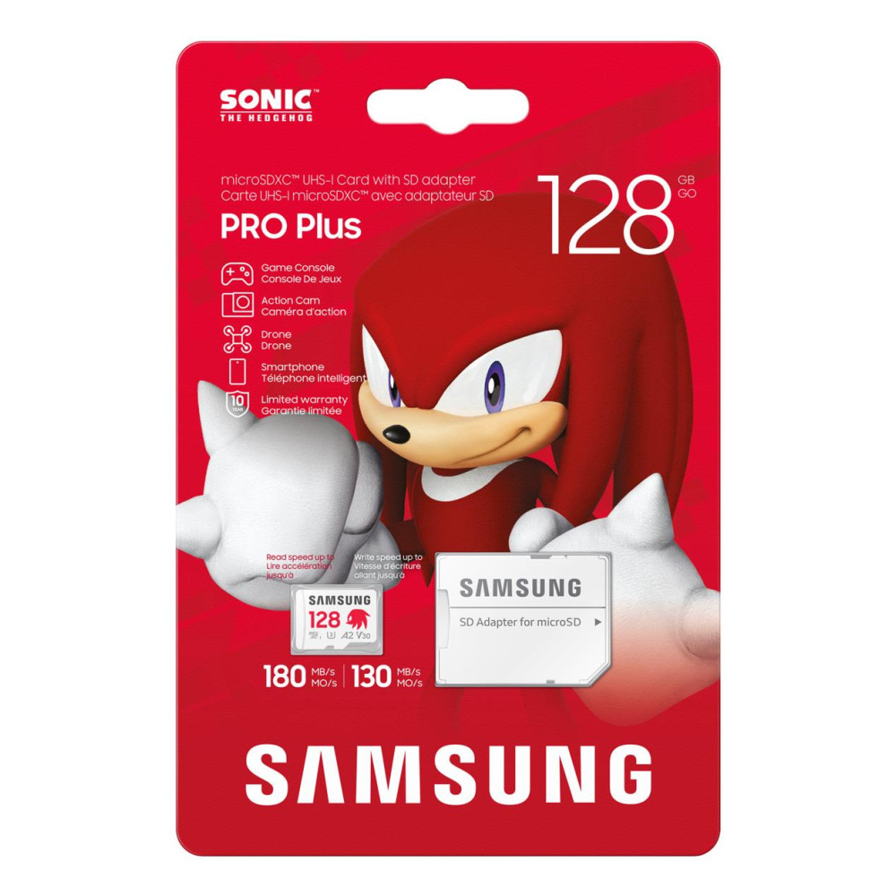 Samsung MB-MD128S. Емкость: 128 GB, Тип флэш-карты: MicroSDXC, Класс флэш-памяти: Класс 10, Тип внутренней памяти: UHS-I, Скорость считывания: 180 MB/s, Скорость записи: 130 MB/s, Класс скорости UHS: Class 3 (U3), Класс скорости видеозаписи: V30. Защитные возможности: Брызгозащищенный, Антимагнитный, Термоустойчивый,..., Цвет товара: Серый, Красный, Белый