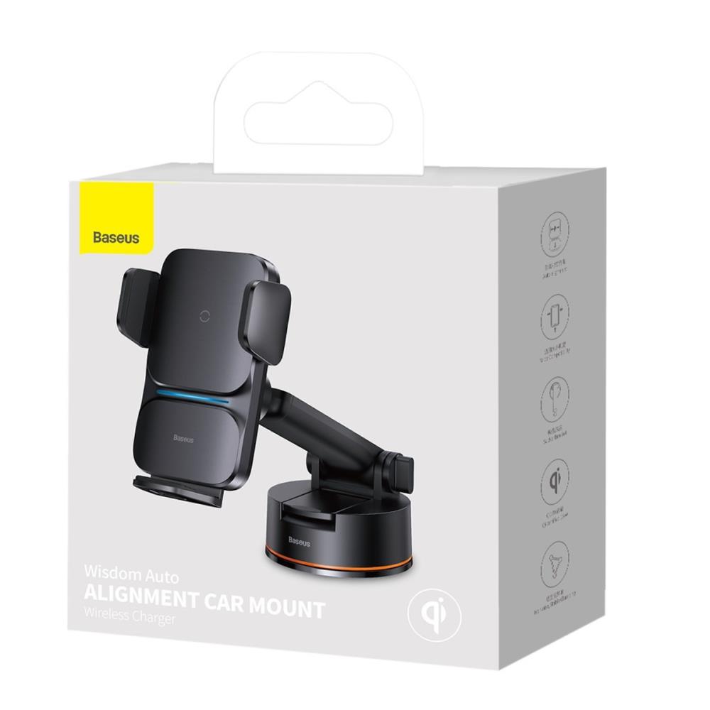 - Baseus Wisdom Auto Alignment Car Mount Wireless Charger(QI 15W(Suction base)Black.