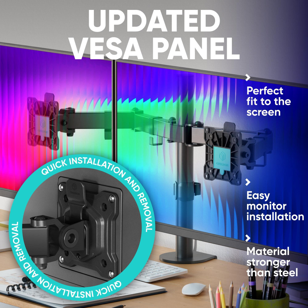 ONKRON D221E-B. Mounting: Clamp/Grommet, Maximum weight capacity: 16 kg, Minimum screen size: 33 cm (13), Maximum screen size: 81.3 cm (32), Minimum VESA mount: 75 x 75 mm, Maximum VESA mount: 100 x 100 mm. Height adjustment, Tilt angle range: -45 - 45°. Product colour: Black