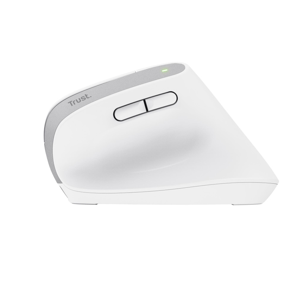 Long Description Trust Bayo+. Form factor: Right-hand, Vertical design. Movement detection technology: Optical, Device interface: RF Wireless + Bluetooth, Movement resolution: 2400 DPI, Buttons type: Pressed buttons, Buttons quantity: 6, Scroll type: Wheel. Power source: Batteries. Product colour: White