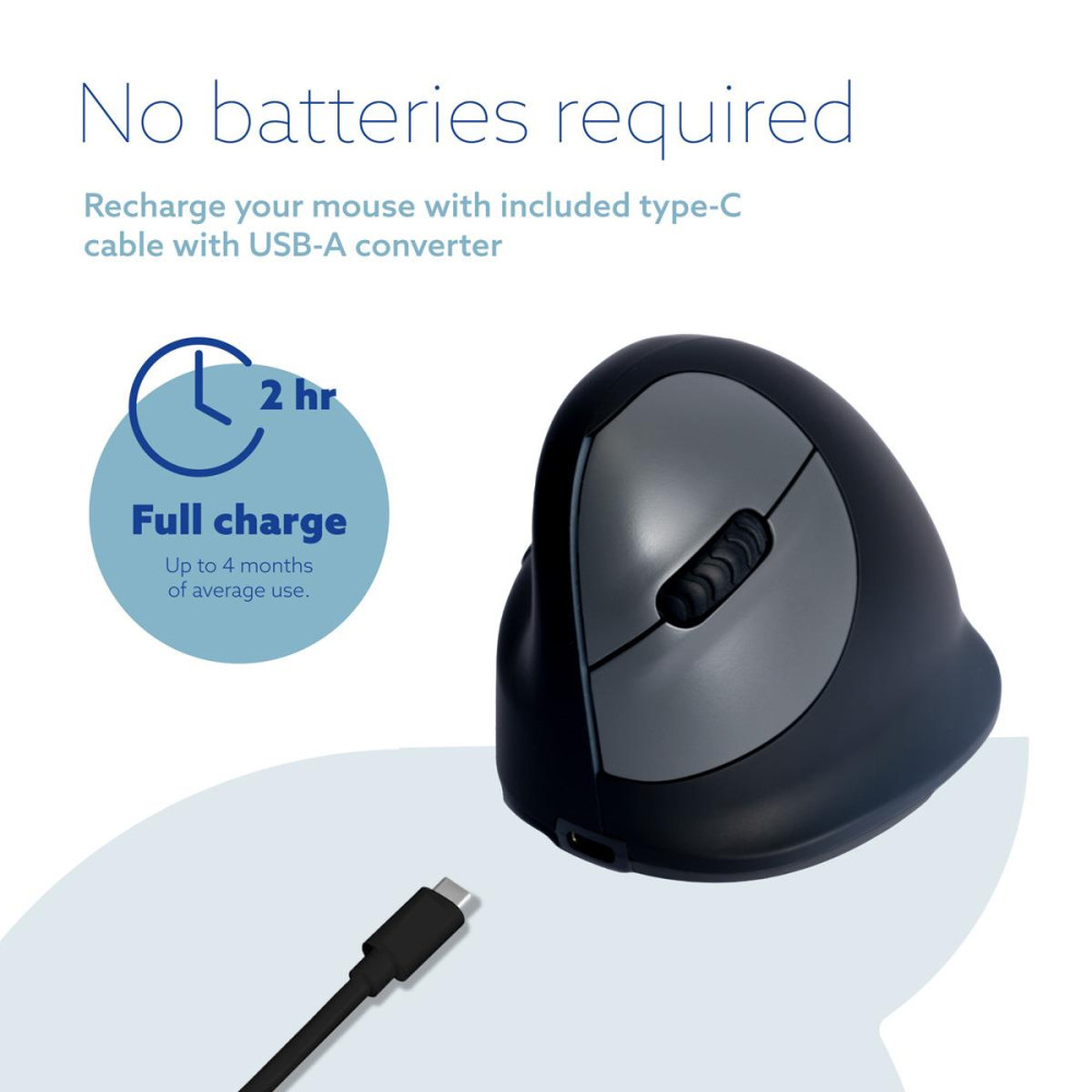Summary R-Go Tools Ergonomic mouse R-Go HE Break with break software, medium (hand size 165-185 mm), left-handed, Bluetooth, black. Form factor: Left-hand. Movement detection technology: Optical, Device interface: Bluetooth, Movement resolution: 2400 DPI, Buttons type: Pressed buttons, Buttons quantity: 5, Scroll type: Wheel. Power source: Batteries. Product colour: Black