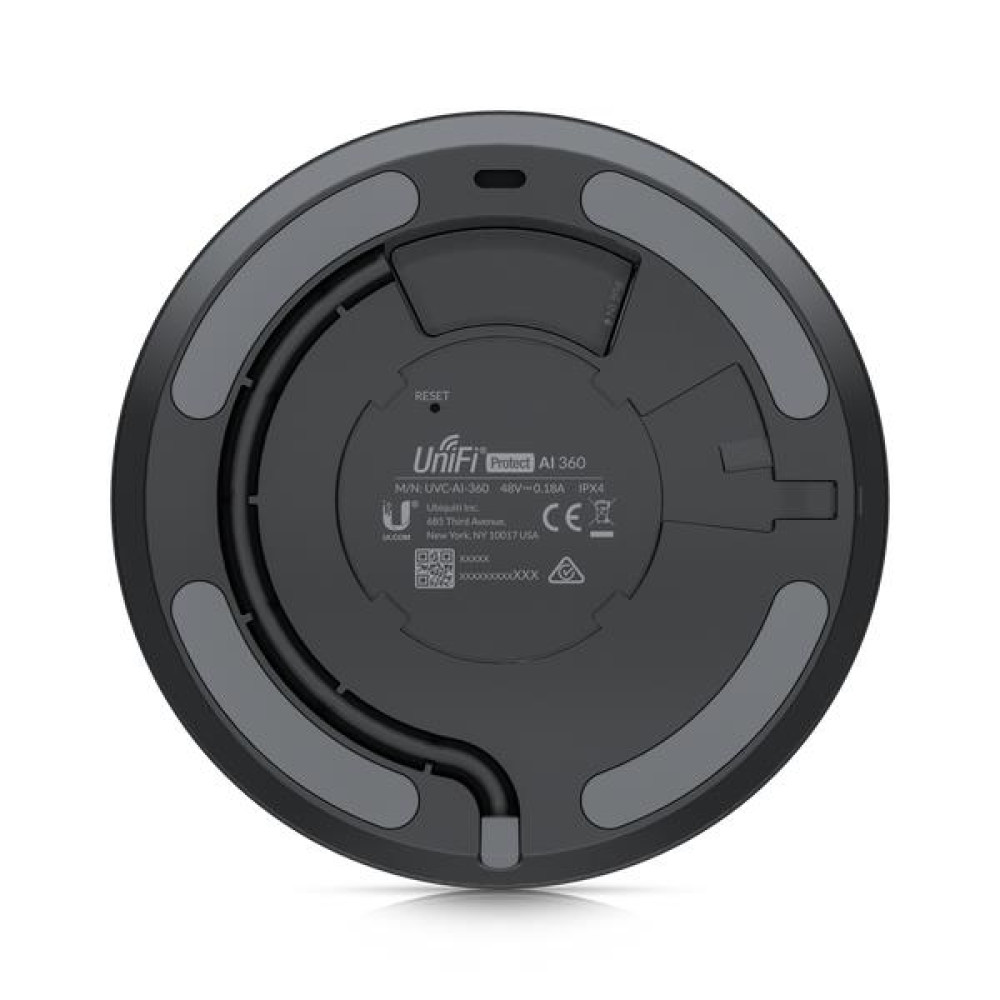 Ubiquiti AI 360. Type: IP security camera, Placement supported: Indoor & outdoor, Connectivity technology: Wired. Mounting type: Ceiling, Product colour: Black, Form factor: Dome. Field of view (FOV) angle: 360°. Sensor type: CMOS. LED type: IR