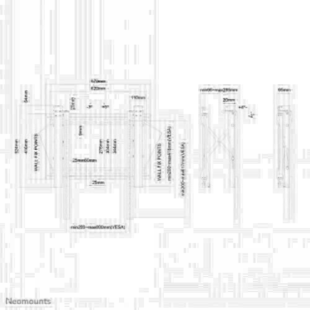 The Neomounts by Newstar wall mount, model LED-VW2500BLACK1 is a fixed wall mount for horizontal and vertical mounting of flat screens up to 75" (191 cm). This mount is a great choice when you want the ultimate viewing flexibility with your flat screen. Depth of this mount is 10 to 29 centimeters. This wall mount is specially made to be used in video walls. The screen can be easily pulled out. Neomounts by Newstar LED-VW2500BLACK1 is suitable for flat screens up to 75" (191 cm). The screen can be installed both in landscape and in portrait mode. To mount the screen in portrait mode, extra VESA brackets are included. The weight capacity of this product is 70 kg each screen. The wall mount is suitable for screens that meet VESA hole pattern 200x200 to 600x600 mm. Create a clean design videowall presentation with the Neomounts by Newstar LED-VW2500BLACK1 videowall mount solution! This is the product refresh of the LED-VW2500BLACK. All installation material is included with the product.