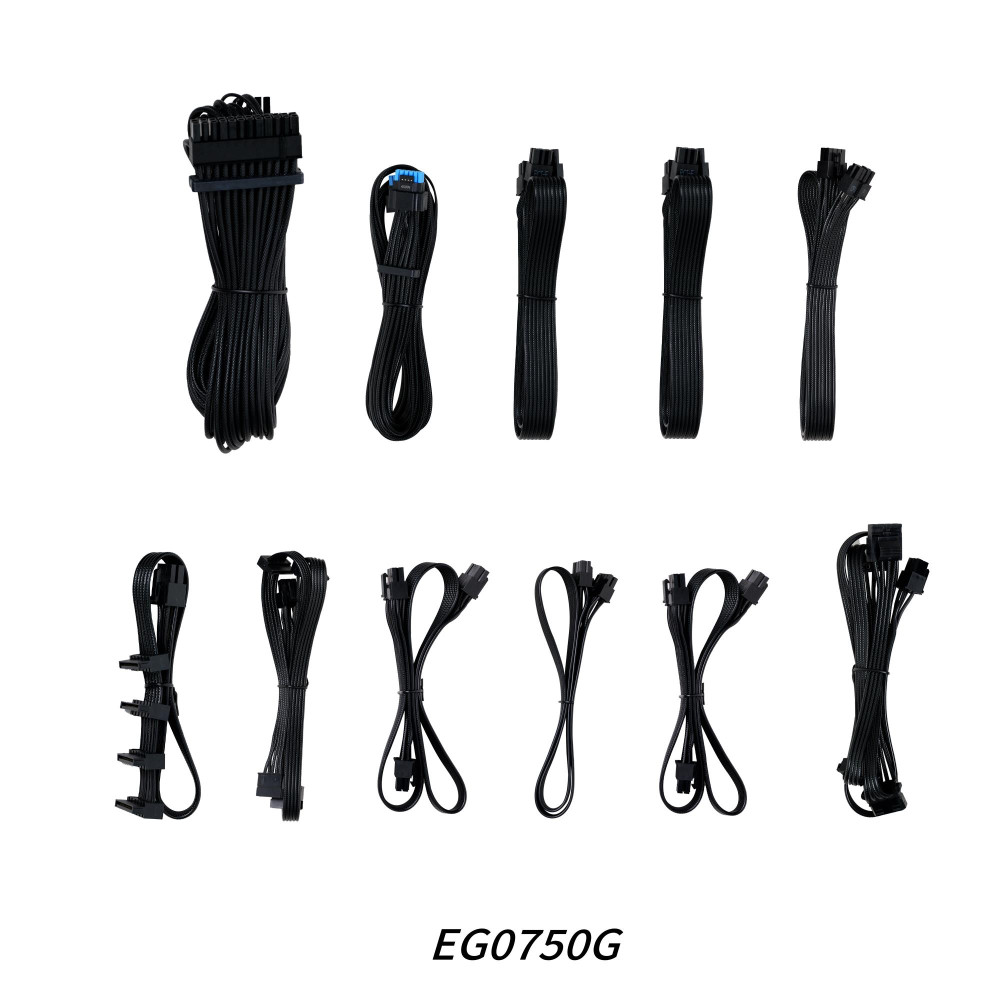 Summary Lian Li EG0750G. Total power: 750 W, AC input voltage: 100 - 240 V, AC input frequency: 50/60 Hz. Motherboard power connector: 24-pin ATX, Motherboard power cable length: 62 cm, SATA power cable length: 300,400 mm. Purpose: PC, Power supply unit (PSU) form factor: SFX, 80 PLUS certification: 80 PLUS Gold. Product colour: Black, Fan diameter: 12 cm. Cables included: CPU, PCIe, Peripheral (Molex), SATA