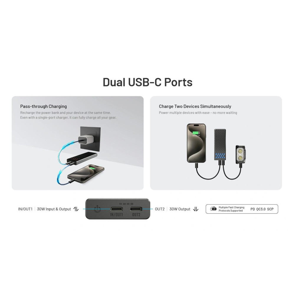 Nitecore Carbo 10000 Gen2 10000mAh Fast Charging Power Bank. Battery capacity: 10000 mAh, Battery technology: Lithium-Ion (Li-Ion), Battery voltage: 3.88 V. USB Type-C ports quantity: 2. Total output power: 30 W. Product colour: Black, Orange