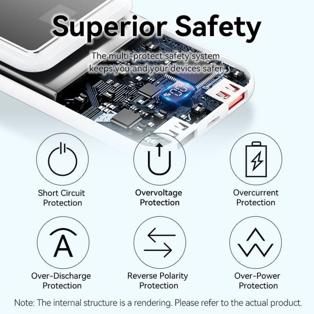 Vention FHOW0. Battery capacity: 10000 mAh, Battery voltage: 3.7 V. USB Type-A output ports: 1, USB Type-C ports quantity: 1. Total output power: 22.5 W, Output current: 3 A. Product colour: White